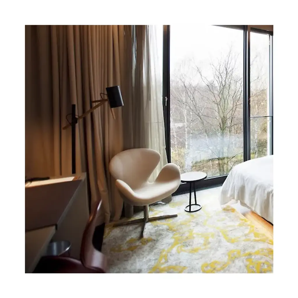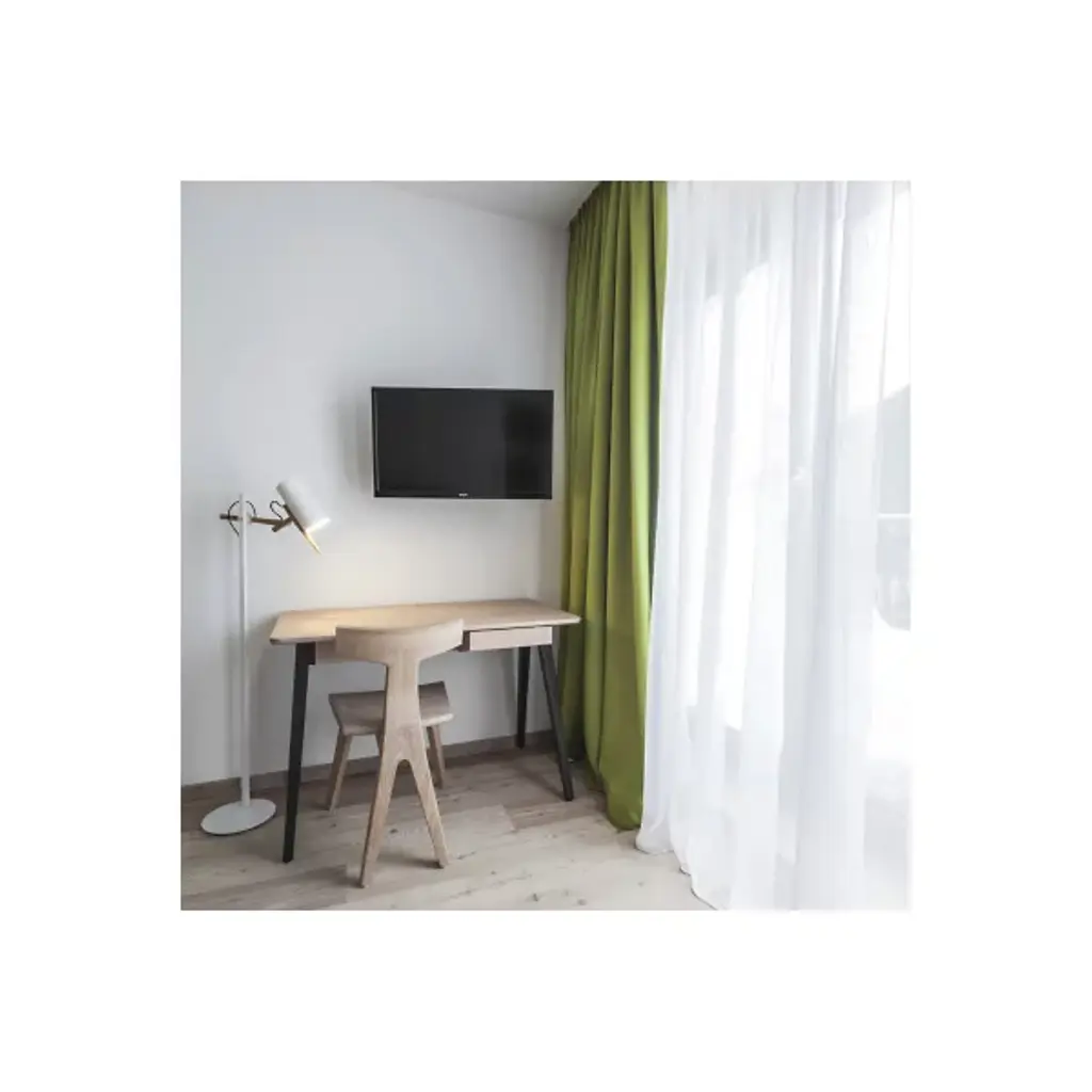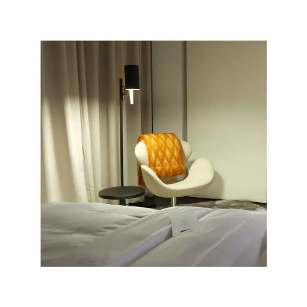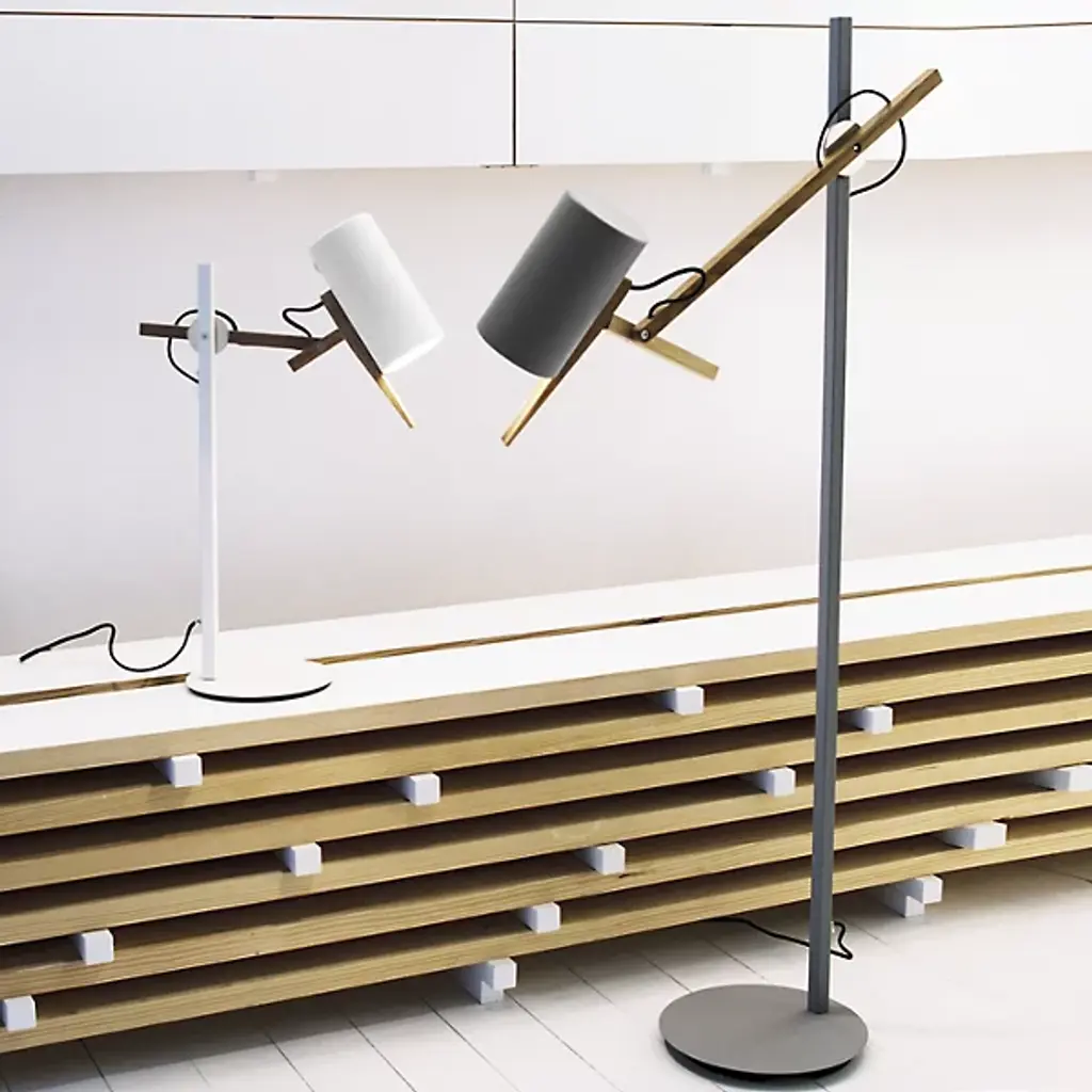 The Marset Scantling 28.8 Floor Lamp combines basic geometric shapes and the use of wood together with metal to give this lamp an approachable appearance and a clearly defined personality. The fully rotating shade uses arms and hinges, negating the need for springs or counterweights.