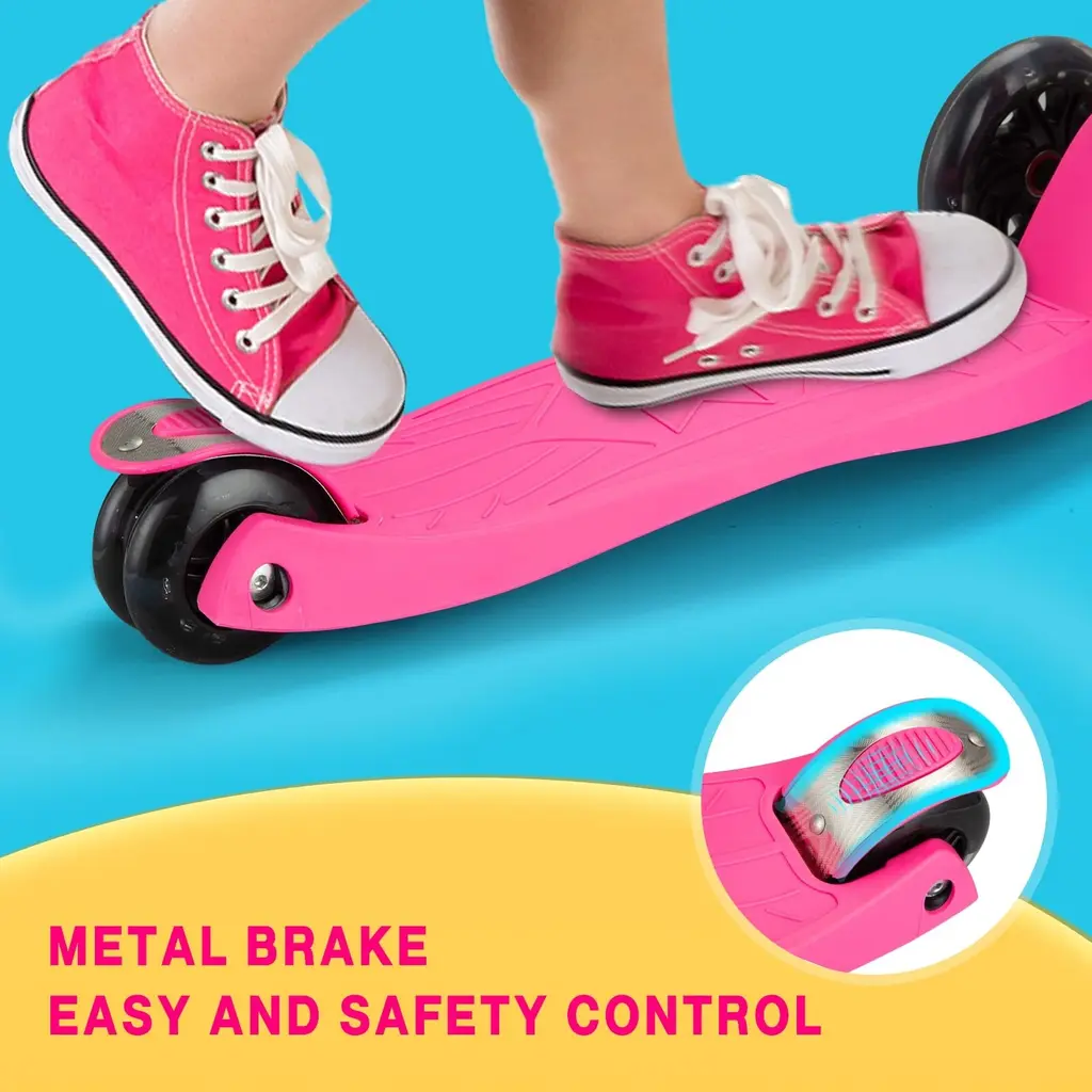 【4-LEVEL ADJUSTABLE HEIGHT】The rustproof aluminum alloy T-bar with secure lifting and twisting lock can be adjusted from 25.5" to 33" from the ground. This 3 wheels scooter accommodates growing kids ages 3 to 12-year-old. New-designed twisting lock provides more safety and durability compared to old-style collar clamps. 【GREAT FOR BEGINNERS】Unique lean-to-steer technology provides safe and easy turns for your little ones. You can control the direction and keep balance by leaning in the direction you want to go. The 3-wheel design provides the perfect balance, so you don't have to worry about your toddler falling. Kids of any age can just hop on and start riding. 【AWESOME FLASHING LIGHTS】Just simply start riding to activate. With 120mm PU flashing wheels, it's wear-resistant and anti-slip and contributes to smooth noiseless gliding. Elastic PU material protects the wooden floor from scratch while playing indoors, and also adapts to various pavements. No batteries required. 【WELL-BUILT & DURABLE】Nasitip kick scooter integrates with a fiberglass reinforced deck as well as wear-resistant and high elastic PU wheels providing essential shock absorption mechanism, what's more, AEBC-9 bearings give the youngster a smooth experience. 【100% SAFE AND SECURE】Safety is our top priority and having an easily accessible brake for your toddler will help give you peace of mind. Upgraded metal-enhanced rear fender brake now is reliable to control the speed and stop the scooter safely and quickly.