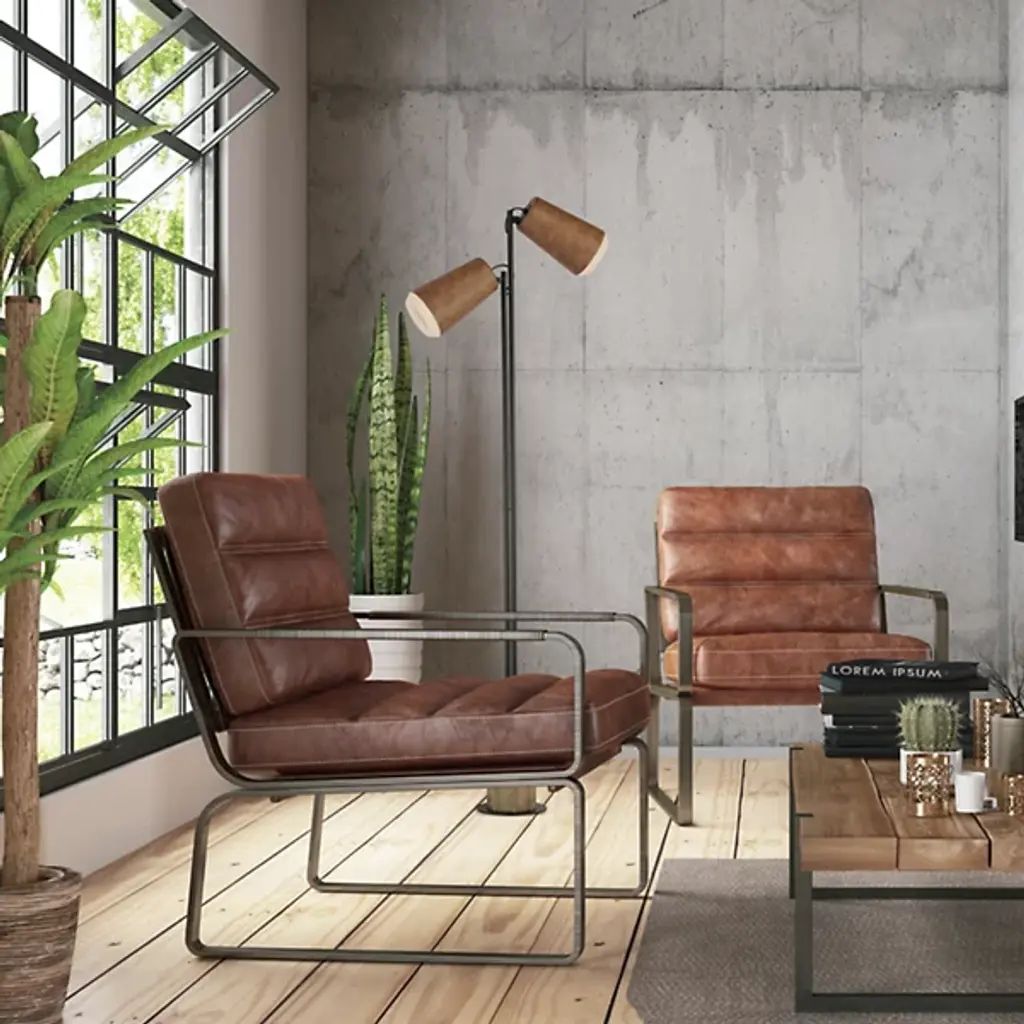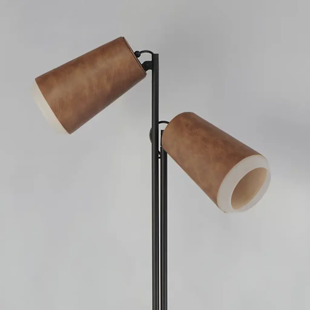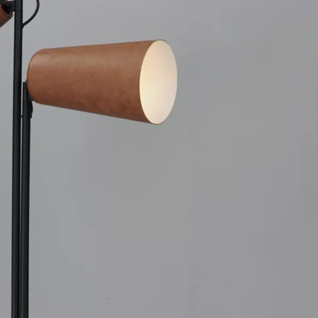 The Scout Floor Lamp from Maxim Lighting is an exceptional lighting solution that effortlessly combines natural aesthetics with rugged elements, bringing a warm ambiance to your transitional space. The defining features of Scout are its leather shades carefully stitched and snugly fit over streamlined encasements. These features add visual interest, creating a desirable atmosphere. The included on/off socket switch adds convenience. This floor lamp is supported by a cylindrical base crafted from wood.