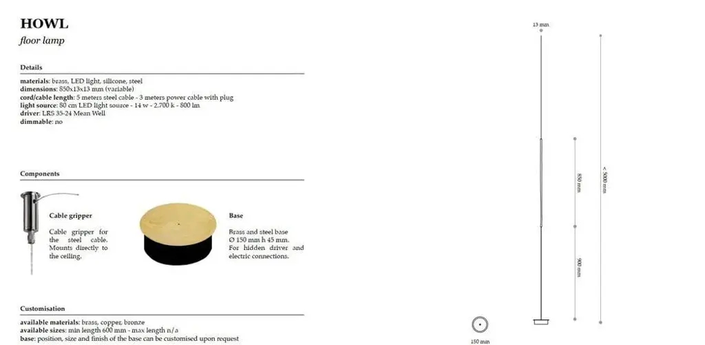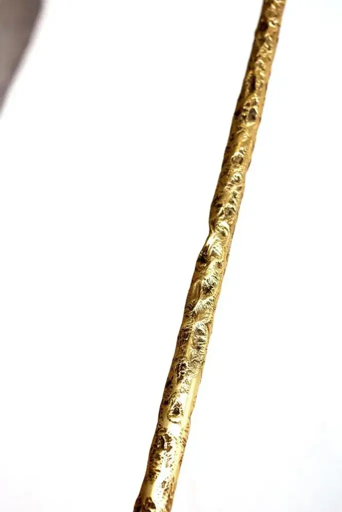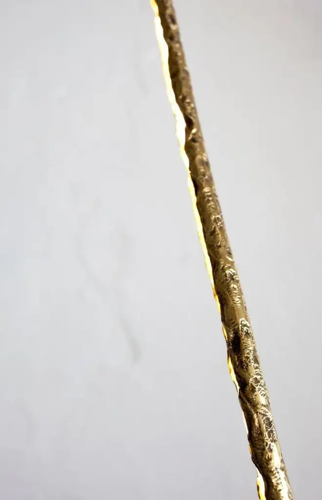 Sculptural brass floor lamp howl by morghen studio materials: brass, led light, silicone, steel dimensions: 1000 x 13 x 13 mm (variable) cord/cable length: 5 meters steel cable - 3 meters power cable with plug light source: 80 cm led light source - 14 w - 2.700 k - 800 lm driver: lrs 35-24 mean well due to the unusual lockdown period that subverted our established habits, we met in the studio with the few materials that we had been able to find in the world “before” (and some great hard rock albums). This context drove us to an extraordinarily limited design approach. With 3 basic elements, a thin brass tube typically used in lighting, a linear led source and a flame we have therefore tried to push the material to its limit to fix it over time in all its beauty. The molten material expressed its formal power through stretches and swellings, generating contrasting landscapes as if it would explode in all its essence. It done all of this without shouting or striking gestures, considering the nature of the object and its way of being in space. We therefore inserted the linear light source into the void created by the casting process, to give the material a different role. Howl for us is therefore the echo of a silent scream, of something external to us and born from the desire to generate an emotion in a period of great complexity. Morghen is a multidisciplinary studio that works on the boundaries between design, art and craftsmanship. They rely on techniques passed on by the artisan heritage mixed with experimentation and contemporary materials. Every single piece is conceived, developed and handcrafted in a carefully renovated old carpenter’s shop located in the milanese bovisa district. Every single piece evolves from and assimilates previous theoretical and practical research. Every single piece is unique. Their work encompasses objects, furniture, lighting and spaces. All our lamps can be wired according to each country. If sold to the usa it will be wired for the usa for instance. This piece is attributed to the mentioned designer/maker. It has no attribution mark and no official proof of authenticity, however it is well documented in design history. I take full responsibility for any authenticity issues arising from misattribution, up to 250v (europe/uk standard).