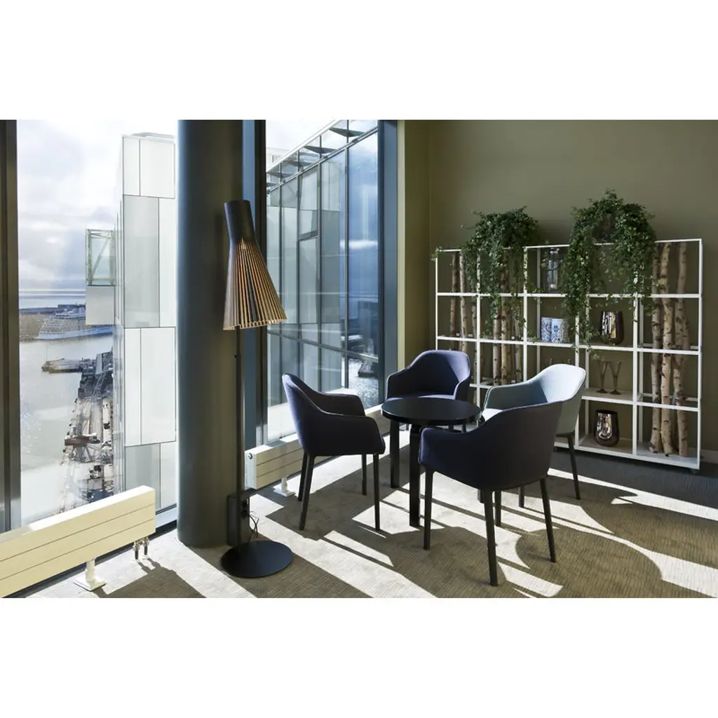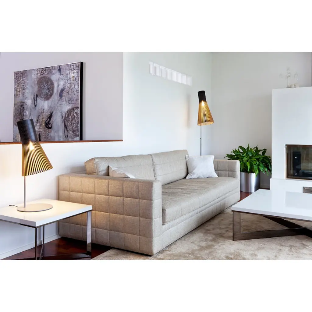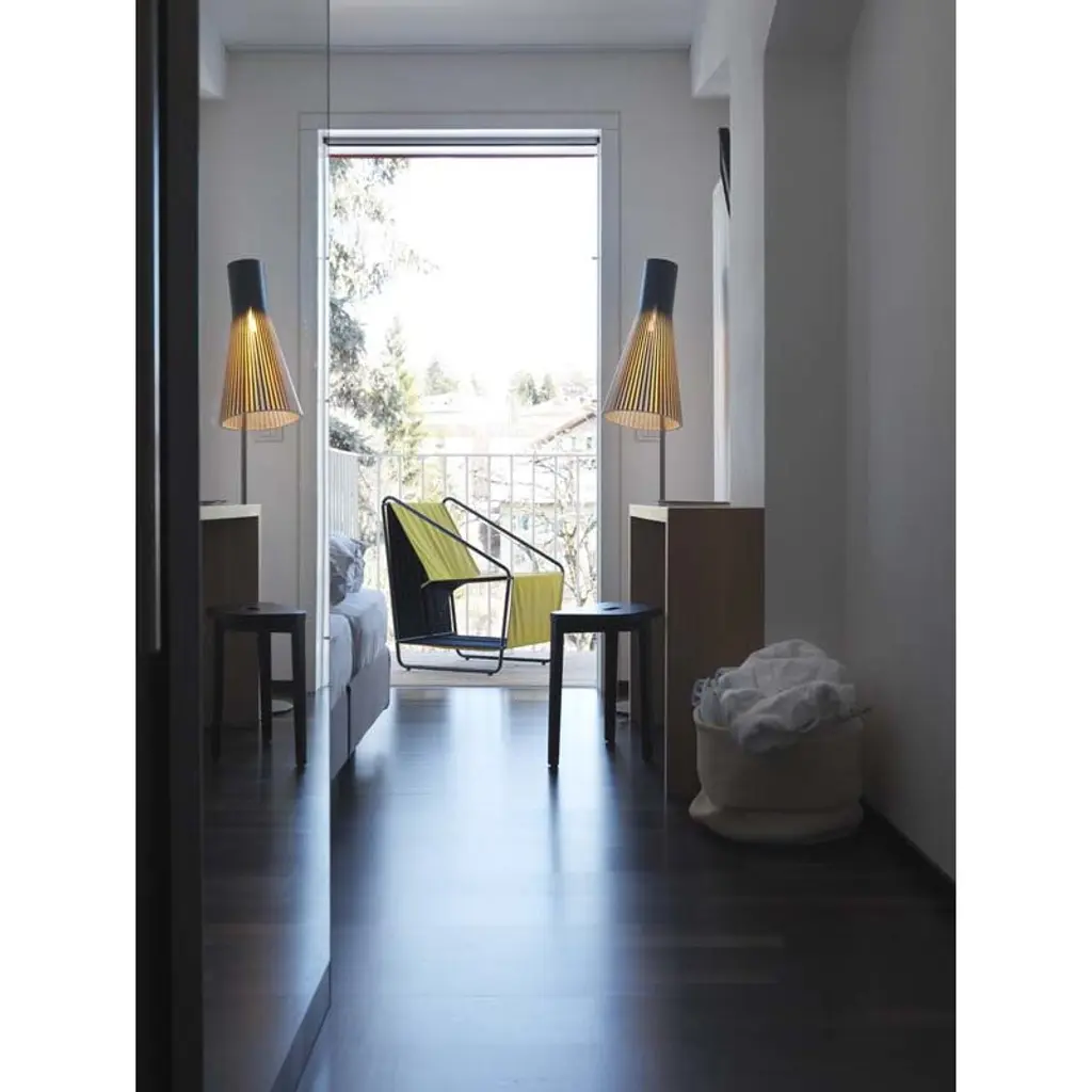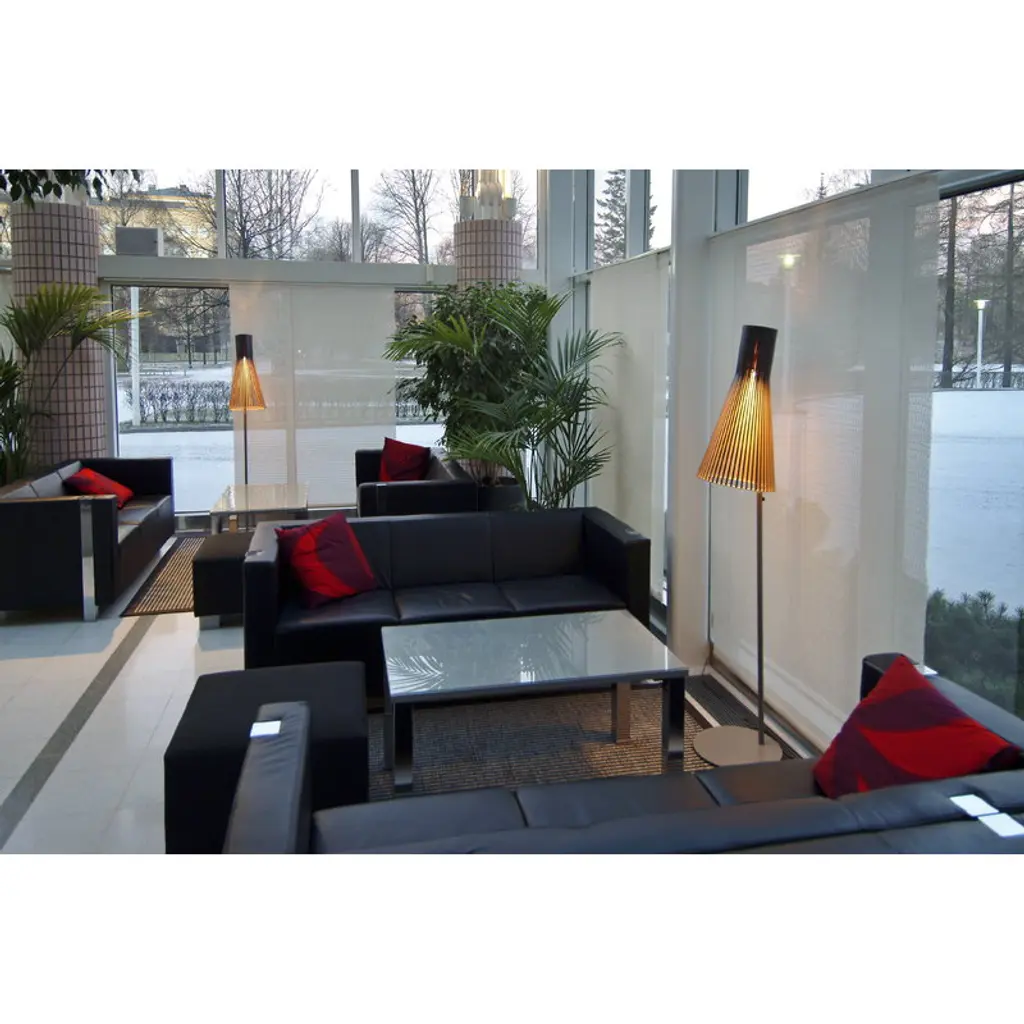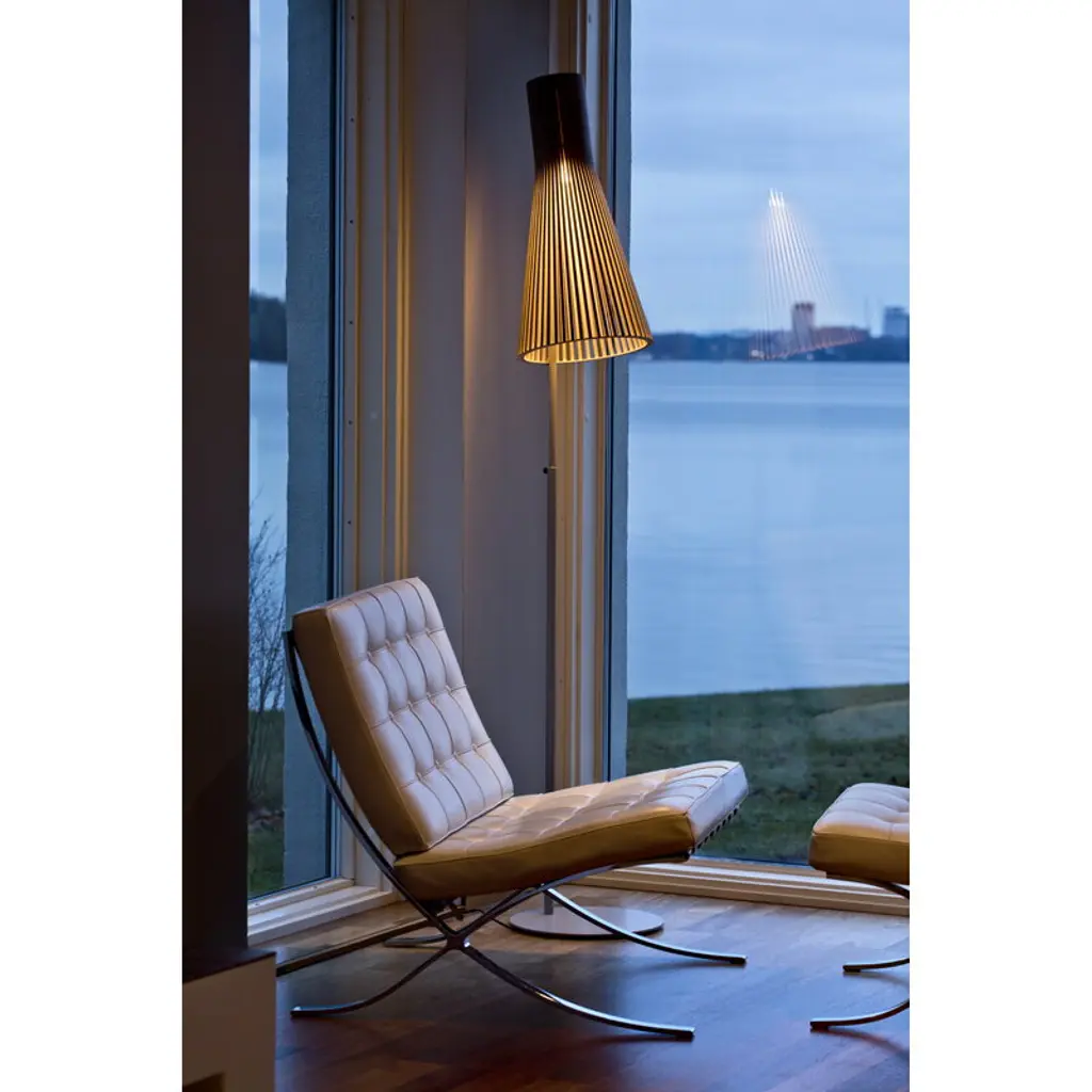 Secto 4210 is an elegant floor lamp with a slatted, wooden shade that fills the space with gentle light. The adjustable leg makes Secto 4210 a perfect companion for an armchair or desk. Secto Design luminaires are handmade in Finland from form-pressed Finnish birch. The lamps have clean Scandinavian silhouettes, and the wooden surface gives them a warm and appealing character. Secto lamps are designed by architect Seppo Koho who wanted to develop a softly filtering light that doesn’t dazzle but invites people to come closer. Secto lamps emphasize space and environment by creating a unique atmosphere and feeling of closeness.