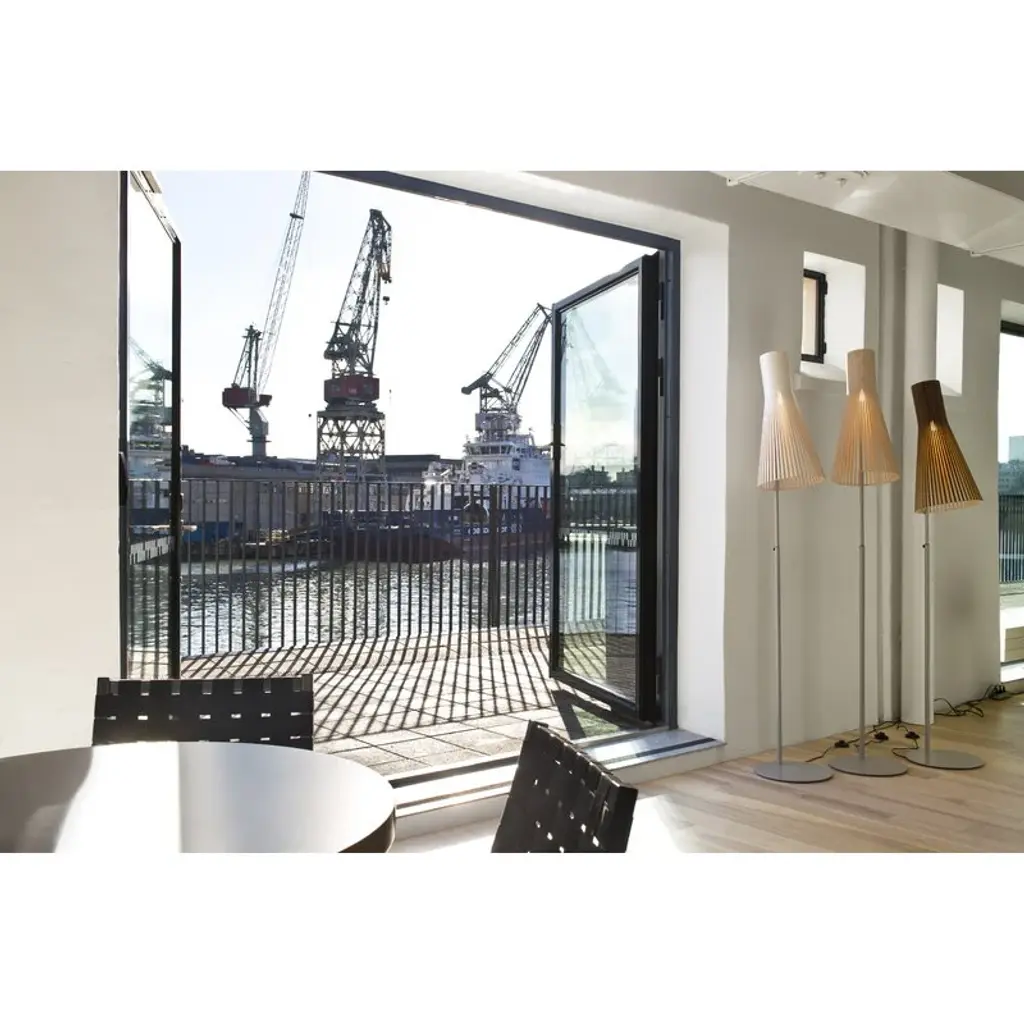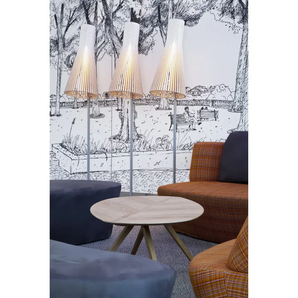 Secto 4210 is an elegant floor lamp with a slatted, wooden shade that fills the space with gentle light. The adjustable leg makes Secto 4210 a perfect companion for an armchair or desk. Secto Design luminaires are handmade in Finland from form-pressed Finnish birch. The lamps have clean Scandinavian silhouettes, and the wooden surface gives them a warm and appealing character. Secto lamps are designed by architect Seppo Koho who wanted to develop a softly filtering light that doesn’t dazzle but invites people to come closer. Secto lamps emphasize space and environment by creating a unique atmosphere and feeling of closeness.