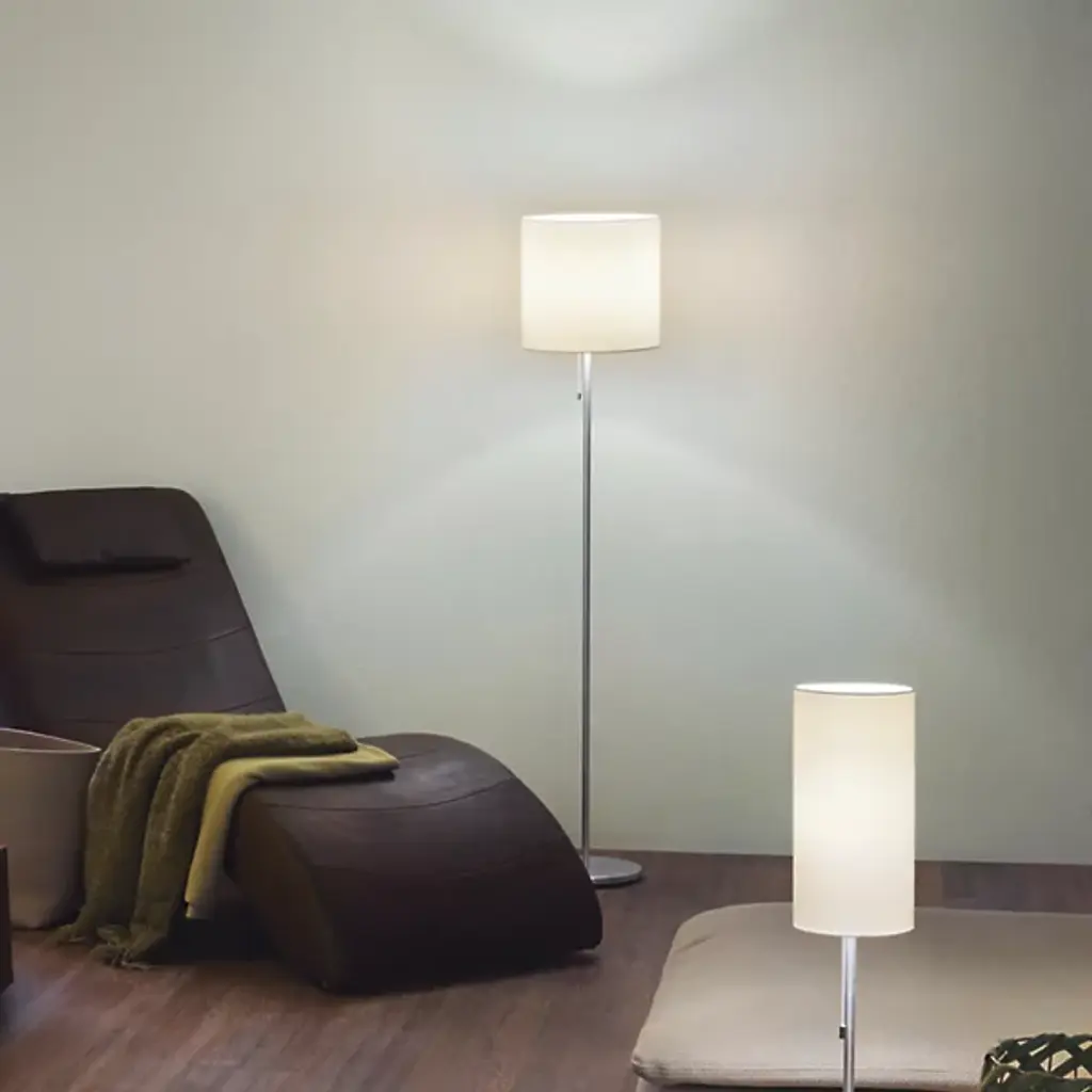 Elegant lines and casual colors give the Eglo Sendo Floor Lamp the ability to blend into almost any space. A creamy white shade and aluminum finish provide the piece with warmth and familiarity, great for creating an unhindered, confident sense of style.