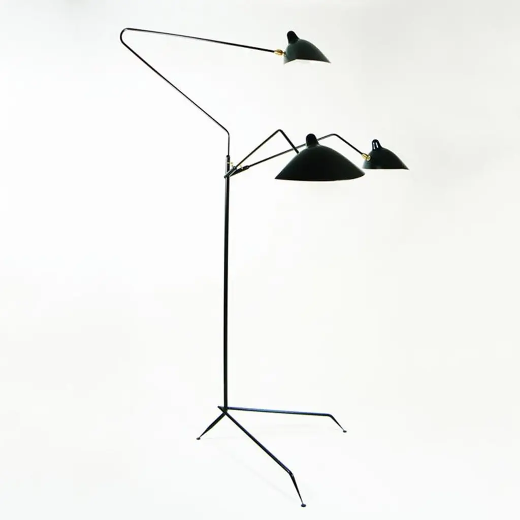 Serge Mouille Mid-Century Modern Black Three Rotating Arms Floor Lamp
