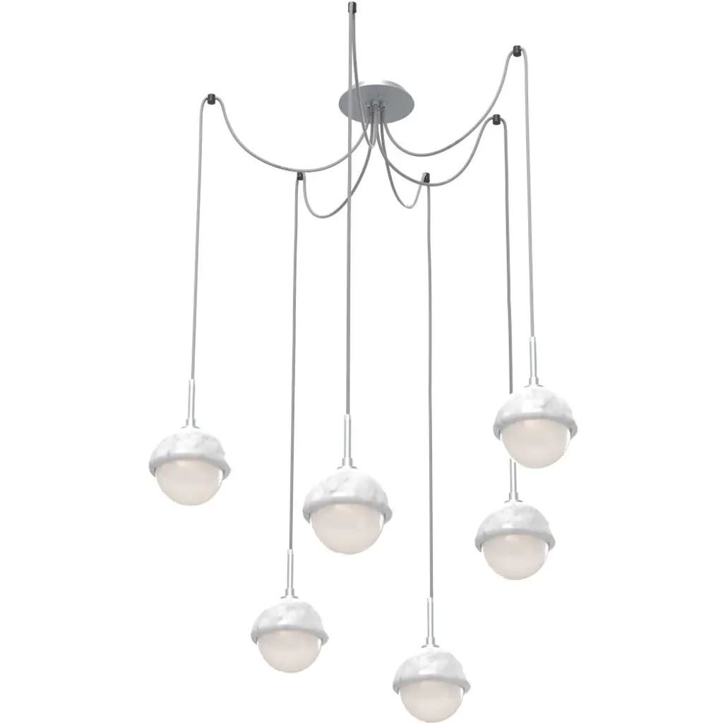 Serge Mouille Mid-Century Modern White Five Fixed Arms Spider Ceiling Lamp