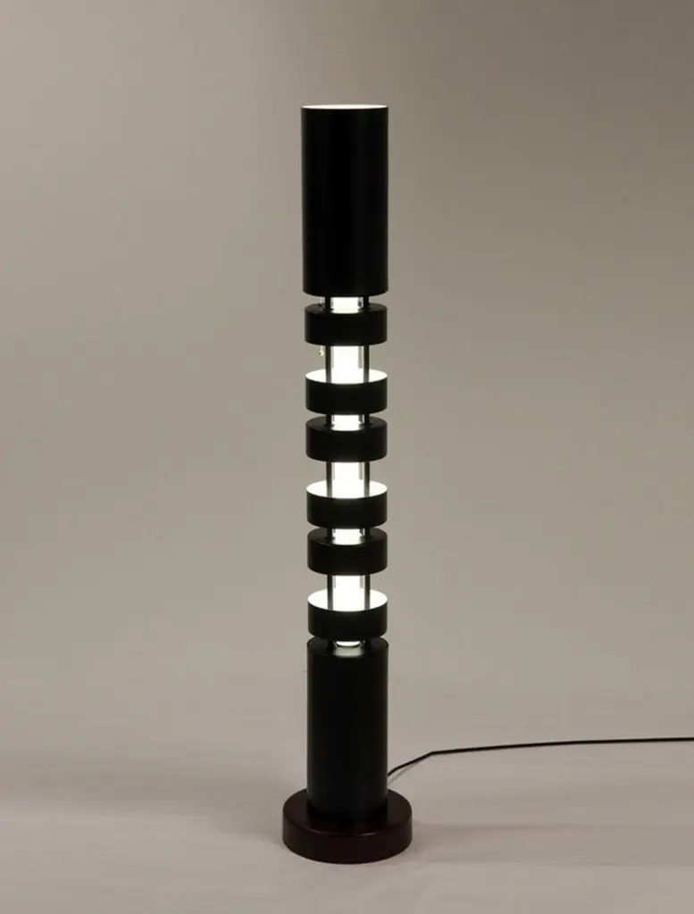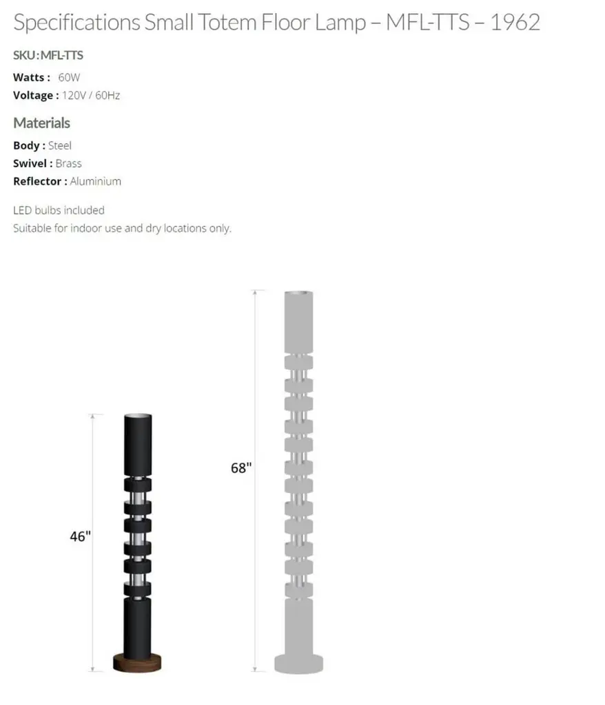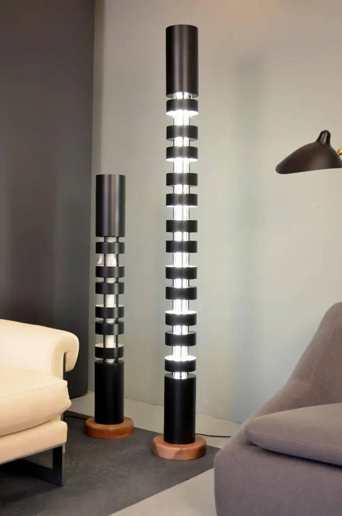 In his Post Black Shapes period, Serge Mouille experimented with color and columns. With the Totem, he stacked cylindrical shades around a central lighting element. By alternating the shades up or down, the light's intensity is not uniform by design.Available in black lacquer on wood platform.COLOR OPTIONAvailable in Black onlyFEATURES-CUSTOMIZATIONNo Customization possible on this model.SWITCH OPTIONSThis model features a foot switchWHAT SETS US APART? - Technical expertise - Full line of products - Availability - Customization - 5-year guarantee - Secured shipment - Small Repairs - After-sale service - Experience (we introduced these lamps to the US 23 years ago).WHAT TO LOOK OUT FOR:- No expensive international shipping, - No Customs fee- No deadlineUpon arrival, all lamps were thoroughly inspected with our 44 checkpoints, which gives us the confidence to offer a 5-year guarantee to our clients.