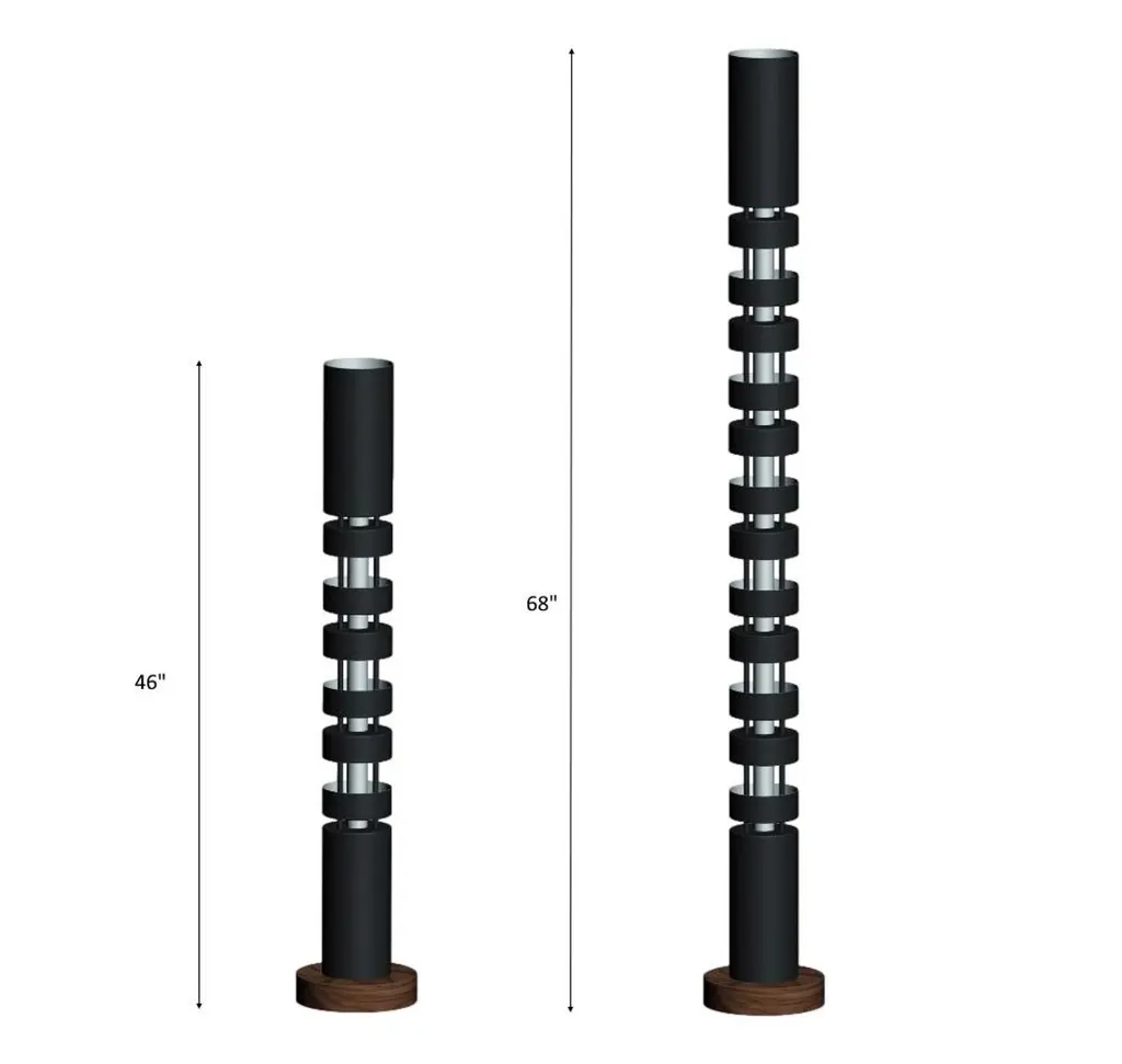 In his post black shapes period, Serge Mouille experimented with color and columns. With the TOTEM, he stacked cylindrical shades around a central lighting element. By alternating the shades up or down, the light's intensity is not uniform by design.Available in black lacquer on wood platform.COLOR OPTIONAvailable in Black onlyFEATURES-CUSTOMIZATIONNo Customization possible on this model.SWITCH OPTIONSThis model features a foot switchWHAT SETS US APART? - Technical expertise - Full line of products - Availability - Customization - 5-year guarantee - Secured shipment - Small Repairs - After-sale service - Experience (we introduced these lamps to the US 23 years ago).WHAT TO LOOK OUT FOR:- No expensive international shipping, - No Customs fee- No deadlineUpon arrival, all lamps were thoroughly inspected with our 44 checkpoints, which gives us the confidence to offer a 5-year guarantee to our clients.