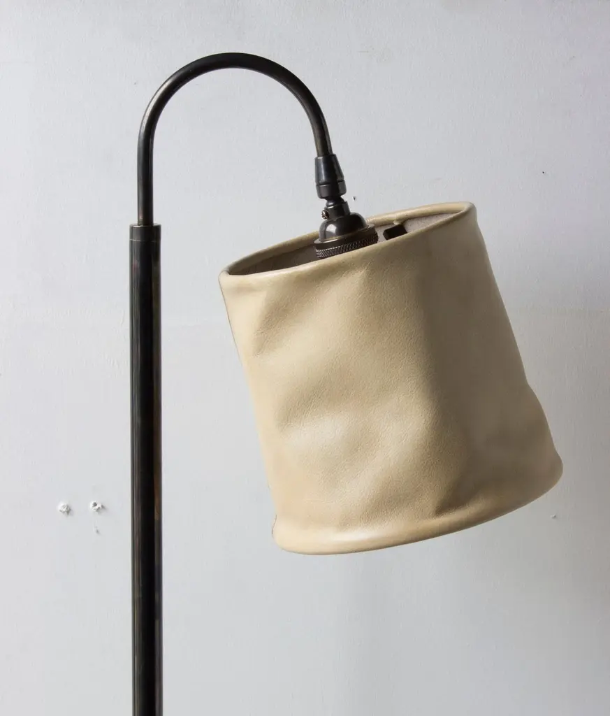 Series01 Floor Lamp, Hand-Dyed Putty Tan Leather, Dark Patinated Brass