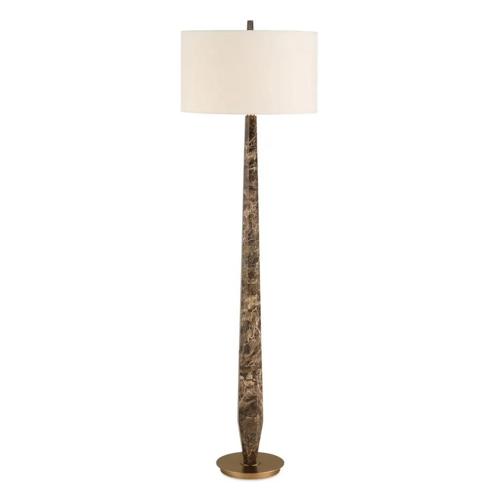 The Serilda Floor Lamp is a stunning piece that exudes elegance and sophistication. Expertly crafted from exquisite marble, it features sharp faceted edges that highlight its warm tones and intricate veining. The lamp is beautifully accented with refined details, including a complementary foot that enhances its overall aesthetic. Topping off this masterpiece is a round hardback drum shade, covered in a luxurious linen fabric with natural slubbing, adding a touch of understated elegance. Each lamp is unique, showcasing the natural beauty and variation of its materials, making it a truly one-of-a-kind addition to any space.