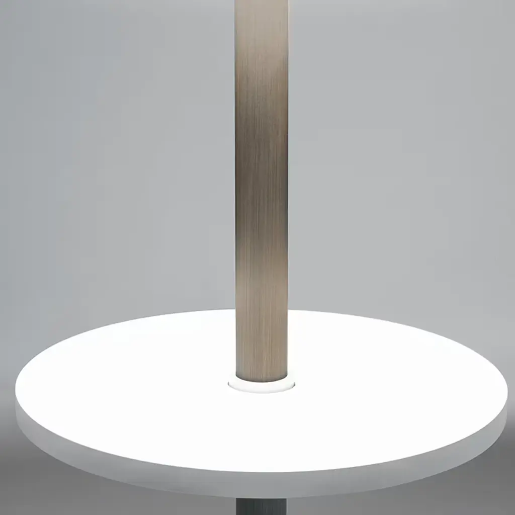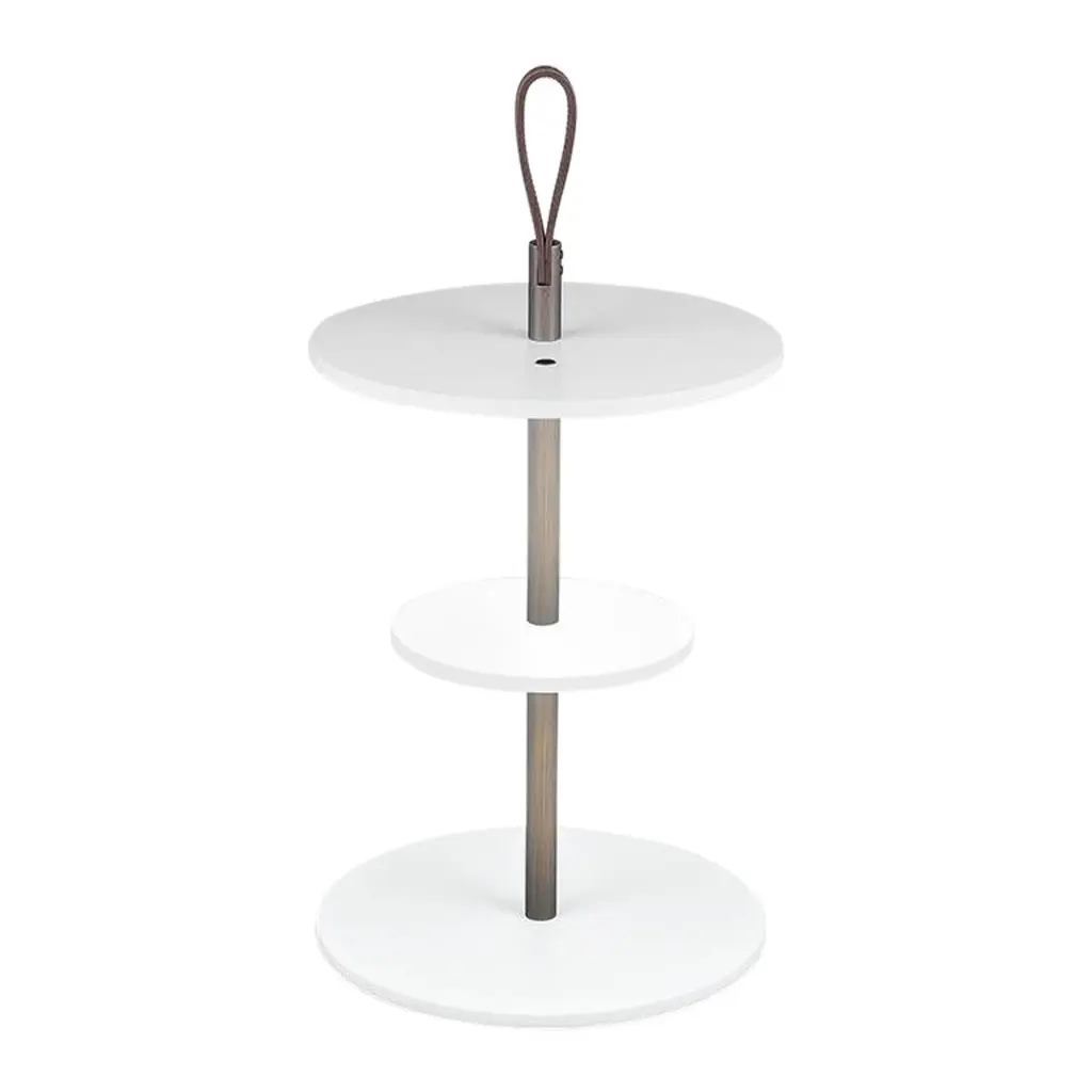 Artifice for the indirect transport of light, the Servoluce Floor Lamp by Park Associati features three discs on a vertical axis. The manual positioning of the central disc generates infinite combinations of reflections and lighting designs. The direct light generated by a fine surface is reflected and controlled according to a precise geometric sequence of the composition. Contract and commercial certifications available upon request.