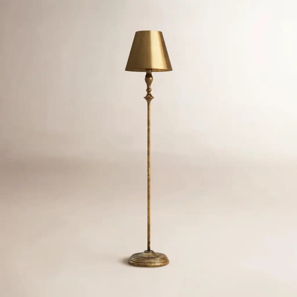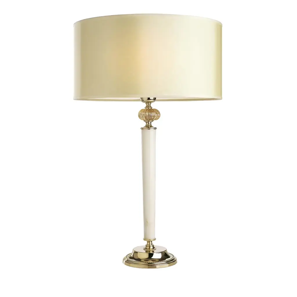 Finish: shiny gold 24K. Other finishes on request.Color: transparent with Sheen effect. Other colors on request.Details: Central body in glass hand-blown, made in Tuscany.Glass cup made in Venice.All glass components are in transparent color and after decorated with gold leaf. This decoration is called Sheen and it is perceptible to the touch and visually.Sheen: Embellished with floral elements, in metal handmade and with silver weldings.They are decorated in 24k gold finish. It’s possible to personalized floral elements by decorating them with colored enamel.Sheen twin : The version without floral elements. Enriched with Swarovski pendant.Shade 34/63 mod. high cone with pvc lurex and brown organza plisse’.Shade 34/64 mod. high cone with brown organza plisse’and pleated ivory fabric.