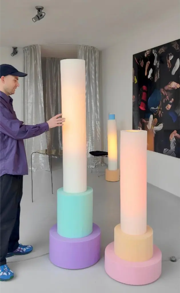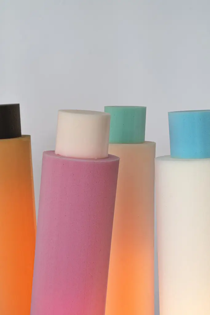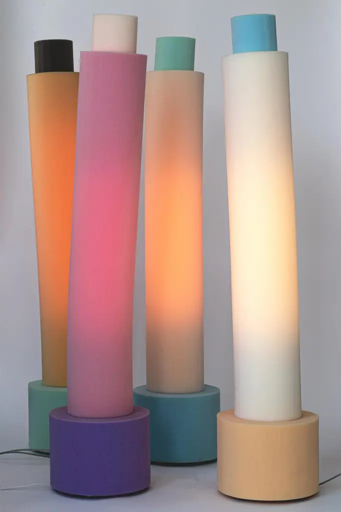 Shirley Schuimlampen Floor Lamp by Sven JansseDimensions: D 27 x H 130 cmMaterials: Treated Polyether FoamAvailable in different colour schemes.The practice of Sven Jansse (Rotterdam, 1987) operates along the edges of art, architecture, design and photography.By investigating themes such as textures, colour, scale and architectural typologies through abstraction or precise recreation, the projects aim to function as a mediator between our every day reality and a more dreamy, parallel universe.