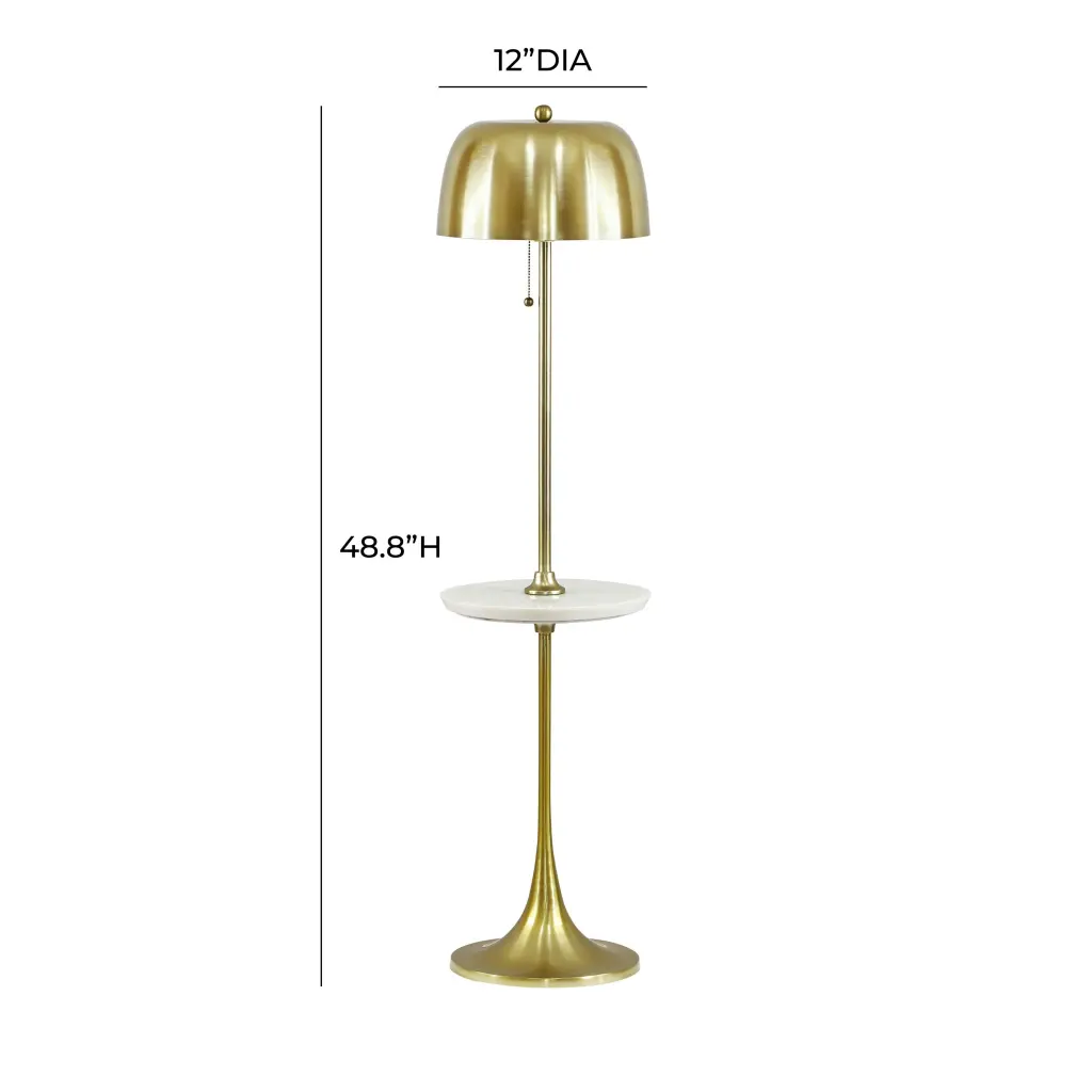 Experience the epitome of European interior style with our Sienna Gold Floor Lamp. Heavily influenced by leading trends, its brushed brass base and shade exude sophistication. With a marble side table attached, this lamp seamlessly merges function and style, adding an uber-chic ambiance to any space.