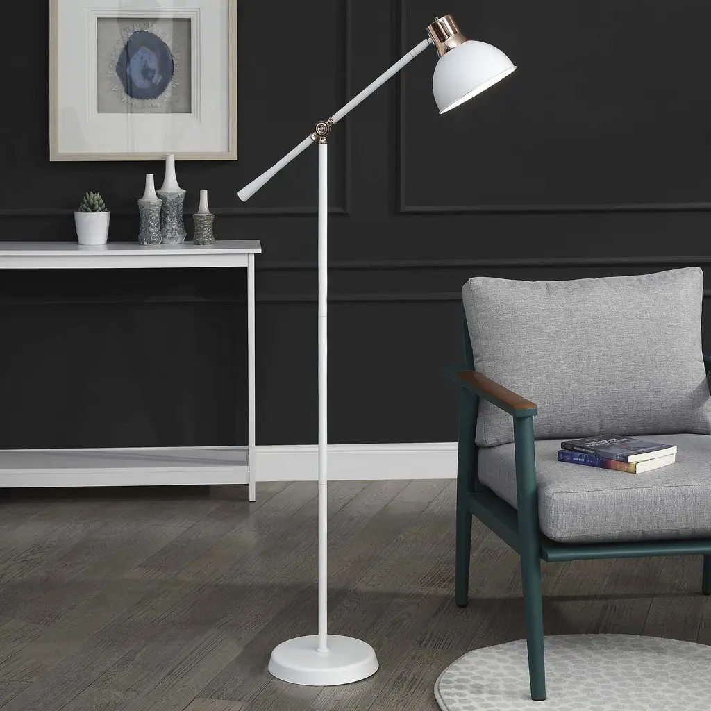 Signature 58 Inch 40 Watt White And Copper Floor Lamp Portable Light
