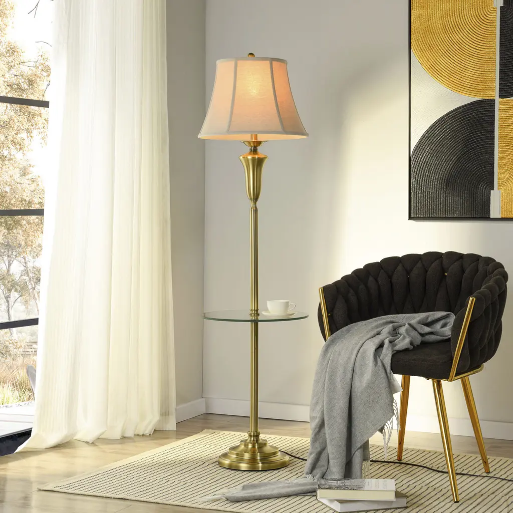 The floor lamp by StyleCraft brings a touch of elegance to any living room or bedroom with its sophisticated design. Featuring a built-in glass shelf, this traditional floor lamp not only provides ample light but also offers a convenient spot to display decorative items. Perfect for creating a cozy ambiance, this piece is a stylish addition to any home.