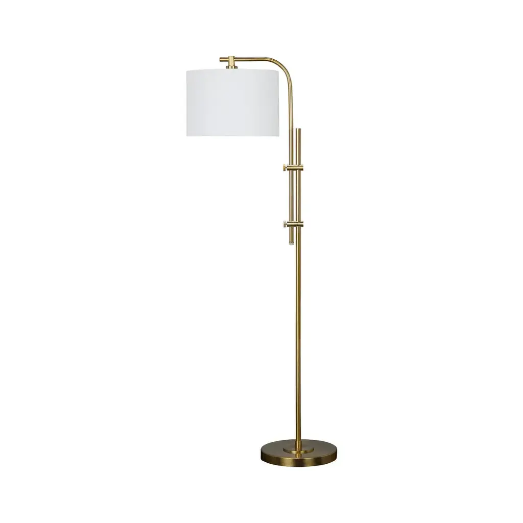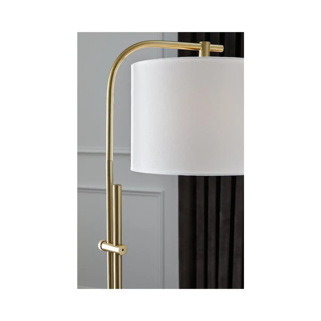 This floor lamp features a beautiful finish that adds an accent to your living space. The lamp arm is elegantly curved with soft edges, and is adjustable to provide targeted illumination. Topped off with a drum shade, this lamp provides a subtle and appealing contemporary design wherever placed.