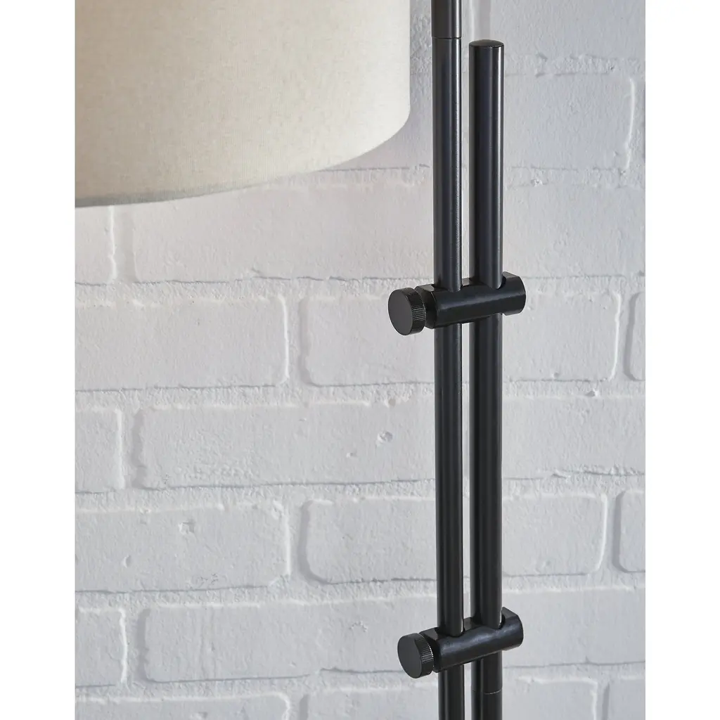 This floor lamp features a beautiful finish that adds an accent to your living space. The lamp arm is elegantly curved with soft edges, and is adjustable to provide targeted illumination. Topped off with a drum shade, this lamp provides a subtle and appealing contemporary design wherever placed.