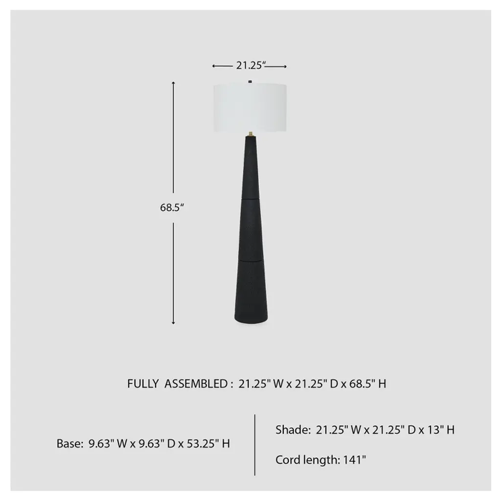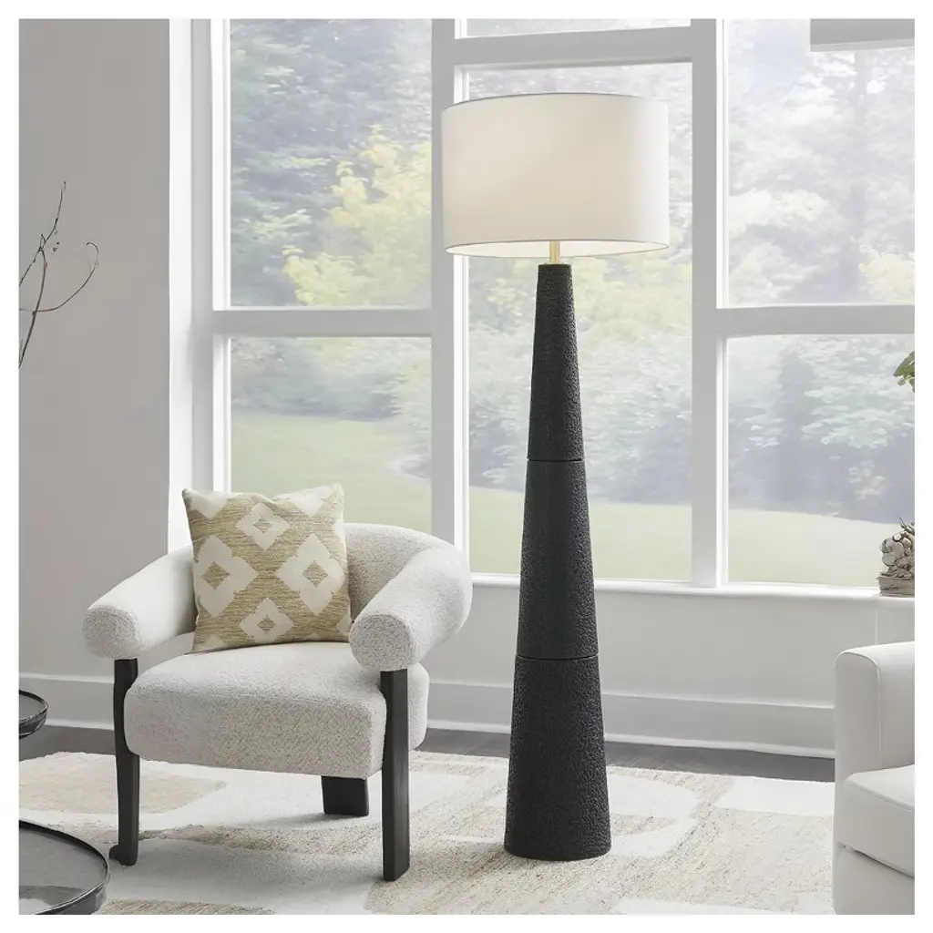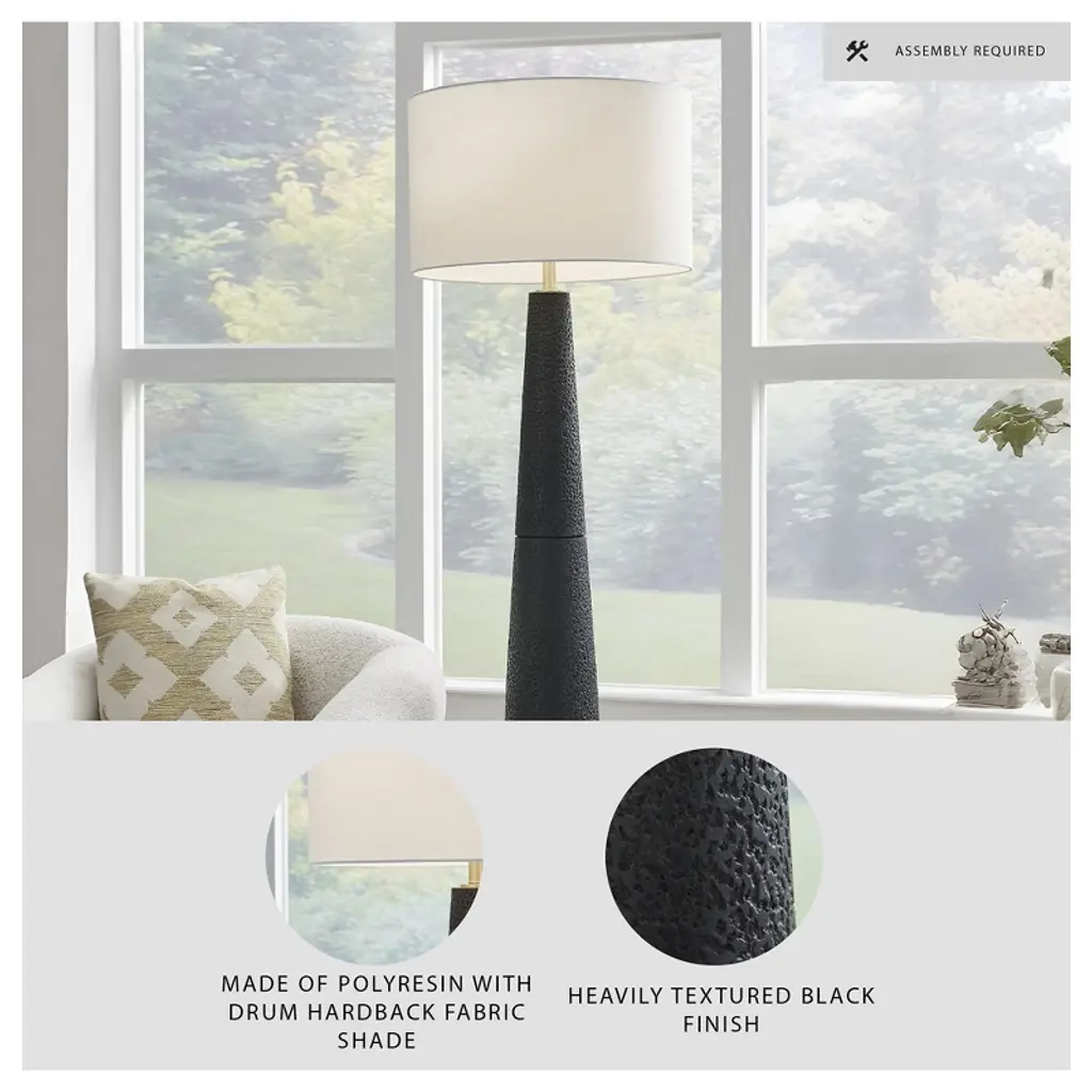 Like a contemporary aesthetic? Embrace it with this chic floor lamp. A mastery in minimalism, it wows with a textured black finish and stylish drum shade, offering a touch of refined elegance. This piece will illuminate your living area or home office with just the right amount of sophistication.