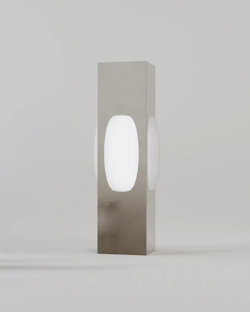 Silica 1 Floor Lamp by DualismoDimensions: W 53 x D 53 x H 165 cmMaterials: Polished Stainless Steel.About:Dualismo is an art and design studio creating work at the intersection of art, objects, and spaces. the studio is dedicated to the creation of sculptural and functional collectible art and design.Sabrina Canals is the founder and creative mind behind Dualismo Studio, where she creates sculptural pieces that blur the lines between art & design. At the heart of her work is a fascination with how objects can feel both timeless and forward-looking, as if they belong to another world or era. Through the blend of raw and industrial materials she shapes pieces that are bold, striking, and rooted in unique craftsmanship and precision. Sabrina’s approach to design is deeply intuitive and personal, guided by a desire to create objects that evoke a sense of mystery and that draw from her interest in ancient art history, symbolism, and spirituality. With Peruvian heritage, Sabrina had an early fascination with the Incan civilization, which then expanded into a deep interest of the ancient world; captivated by its architecture, art, astronomical insights, as well as their reverence for nature. With a background in interior architecture and furniture design from the School of the Art Institute of Chicago, Sabrina’s practice has expanded to include architectural lighting, experiential installations & events, and art direction & set design for film and television. She sees these diverse disciplines as essential facets of her creative path, each adding depth and perspective to her work. Through Dualismo Studio, Sabrina continues to explore the boundaries of art and design, pursuing honest expressions that bring purpose and passion to her life.All our lamps can be wired according to each country. If sold to the USA it will be wired for the USA for instance.