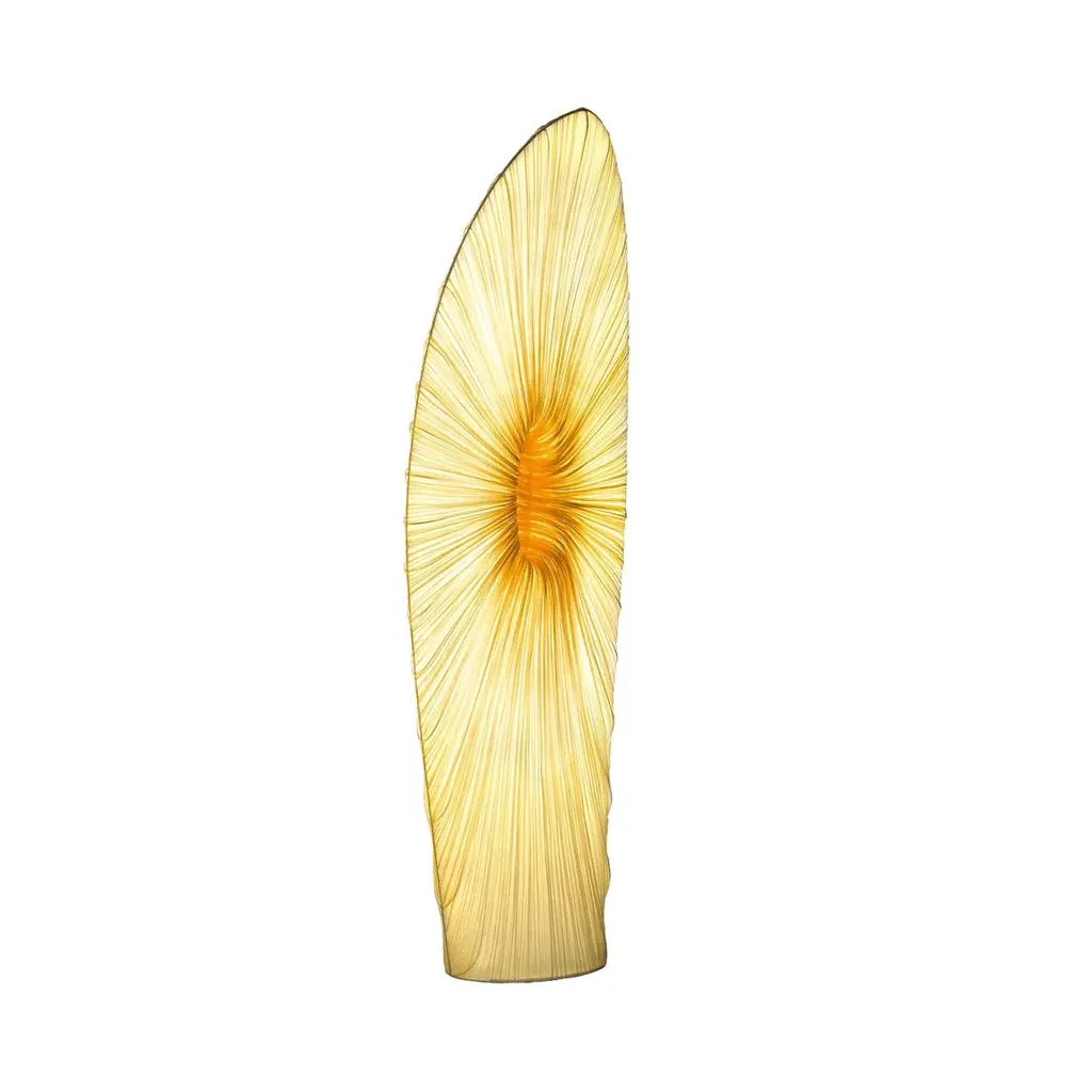 Maestro is part of the Orchestra Family, which strikes a chord with its organic, sculptural forms. This collection takes its inspiration from natural musical forms, as well as modern sculpture and architecture. Maestro is a tall floor lamp handmade of silk on metal.