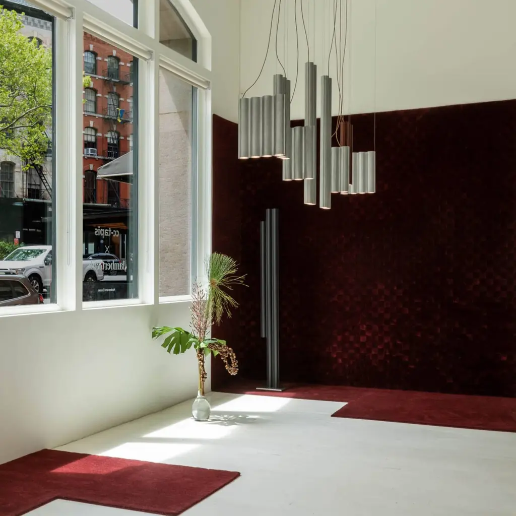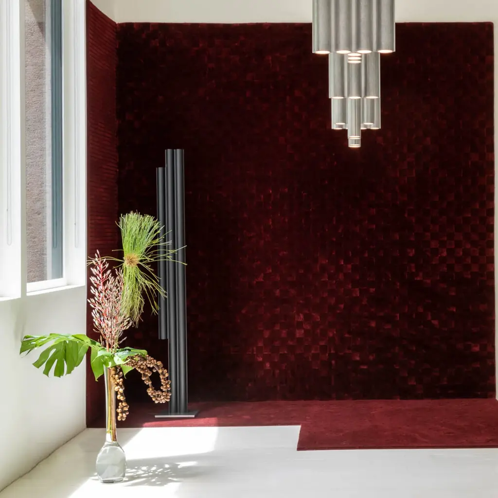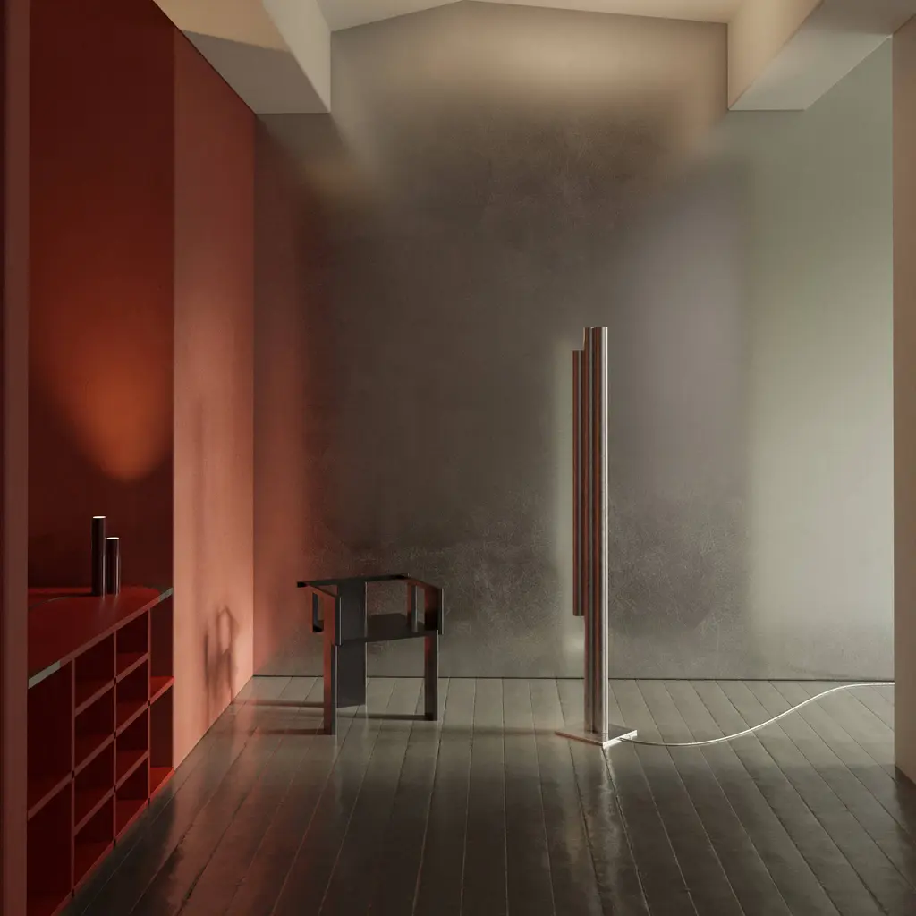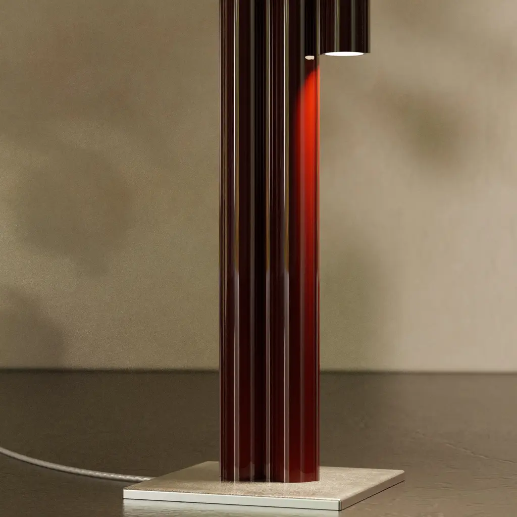 Silo 3FH floor is a sculptural take on the traditional standing lamp, with a linear presence that makes a statement whether off or illuminated. Providing light upward from its 3 channels and downward as well from the shorter cylinder, the floor light is fashioned using custom aluminum extrusions in either metallic or color finishes, set on a plinth-style base.