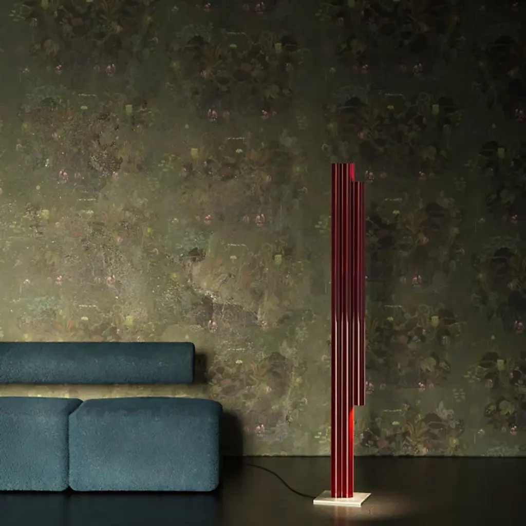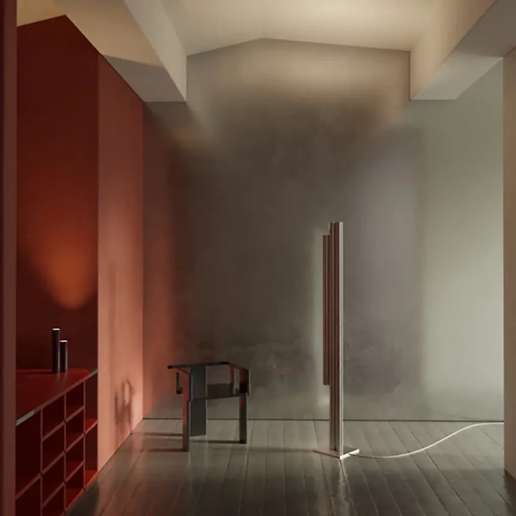 The Silo 3FH LED Floor Lamp from Lambert & Fils is a creative design with direct elegance and a touch of mystery. Its ultra-modern design combines rural farm aesthetics of grain silo design with contemporary decor. The lamp features a shorter offset cylinder suspended from two longer tubes of equal length, rising from a low, angular base with a vinyl cord to create a sculpturally intricate form. Energy-efficient LED lamping within each custom-extruded cylinder provides illumination above and below, and a polycarbonate diffuser softens the light within into a gentle, ambient glow.