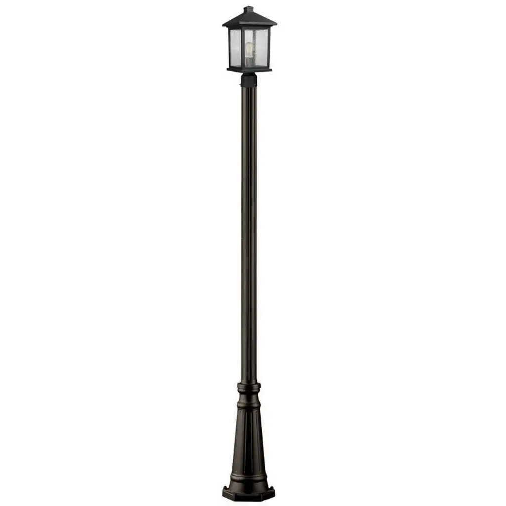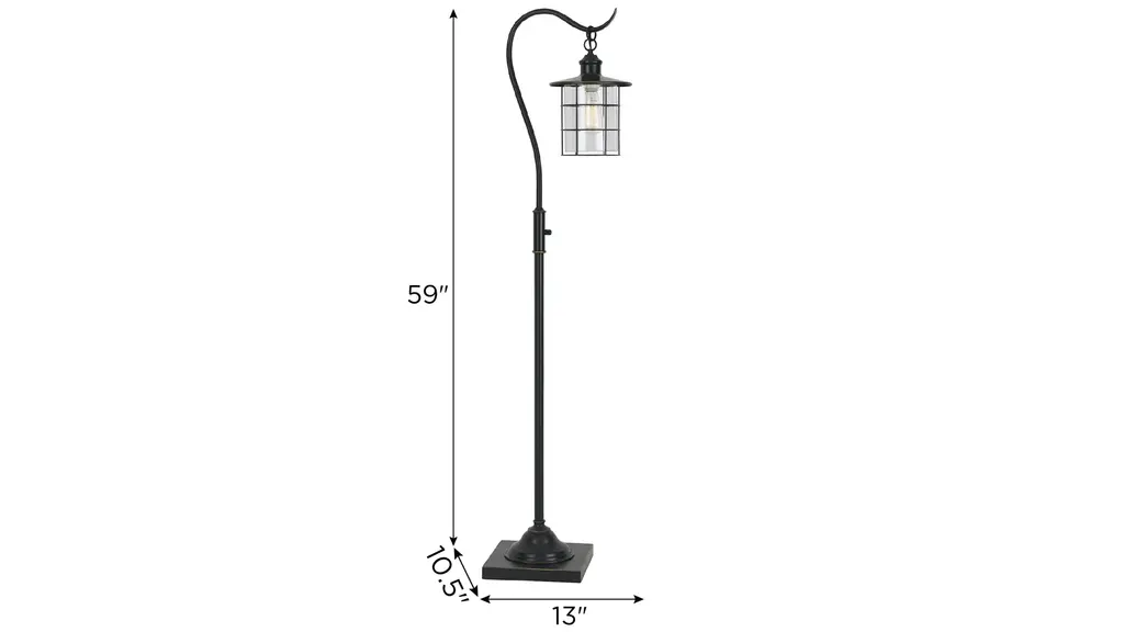 Update your decor with this hanging Silverton Arc Floor Lamp. Set in a hand painted dark bronze finish, it features a round weighted base along with a lantern inspired downlight. This lamp ships complete including retro-style edison bulbs.