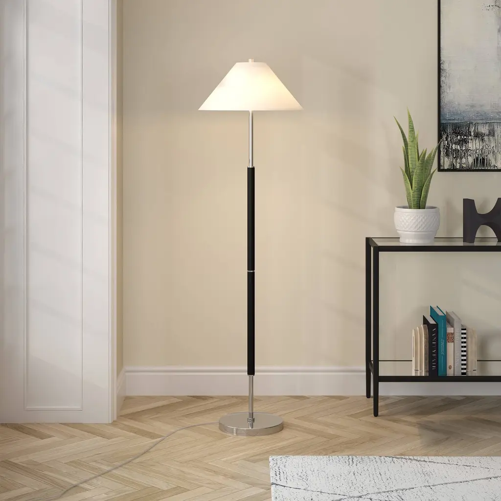 Simona 2-Light Floor Lamp With Fabric Shade - 18" Wide - Matte Black/polished Nickel