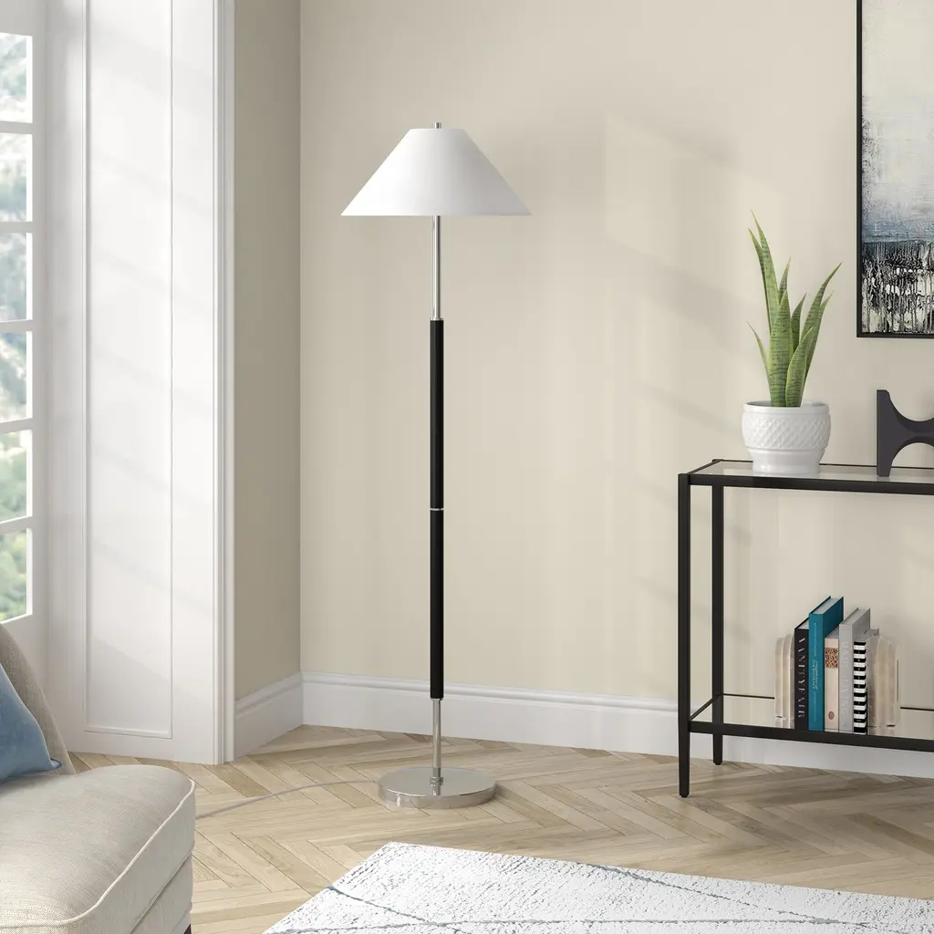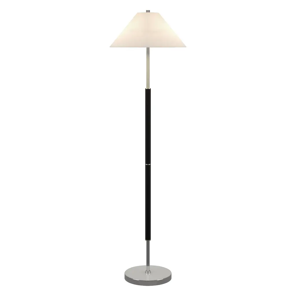 Add visual interest to any room with this two-toned contemporary floor lamp. On-trend neutral colors are perfectly paired with lustrous metallic accents to elevate your design scheme. Its generous tapered empire shade holds space for two bulbs to cast extra light wherever it's needed.