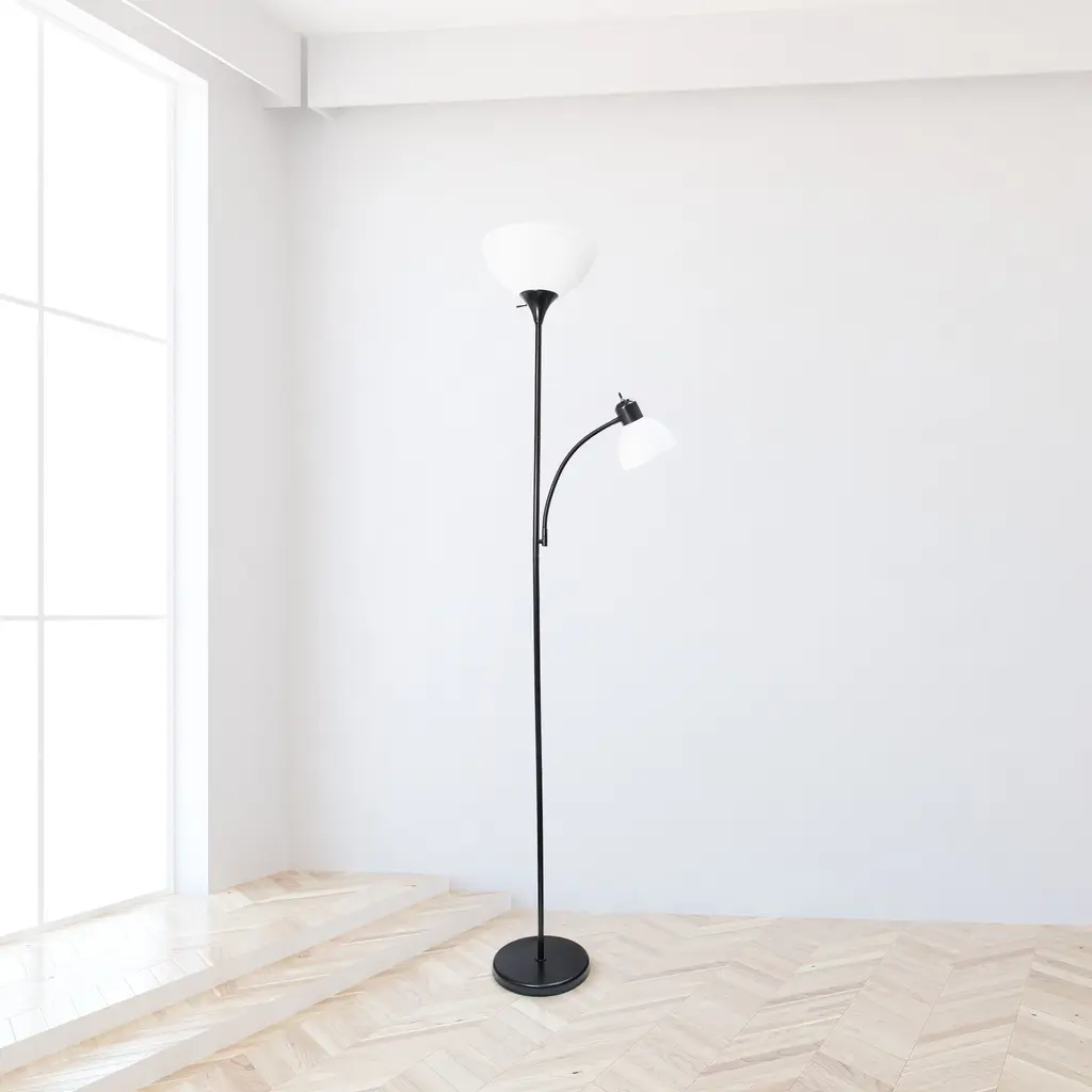 Simple Designs 71.5" Floor Lamp With Reading Light 2 Pack Set With White Shades - Black