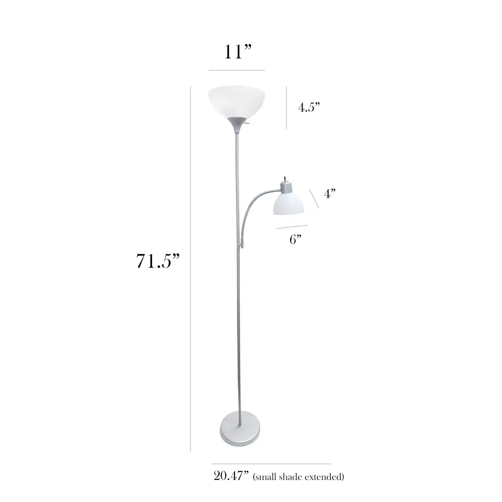 Simple Designs 71.5" Floor Lamp With Reading Light 2 Pack Set With White Shades - Silver