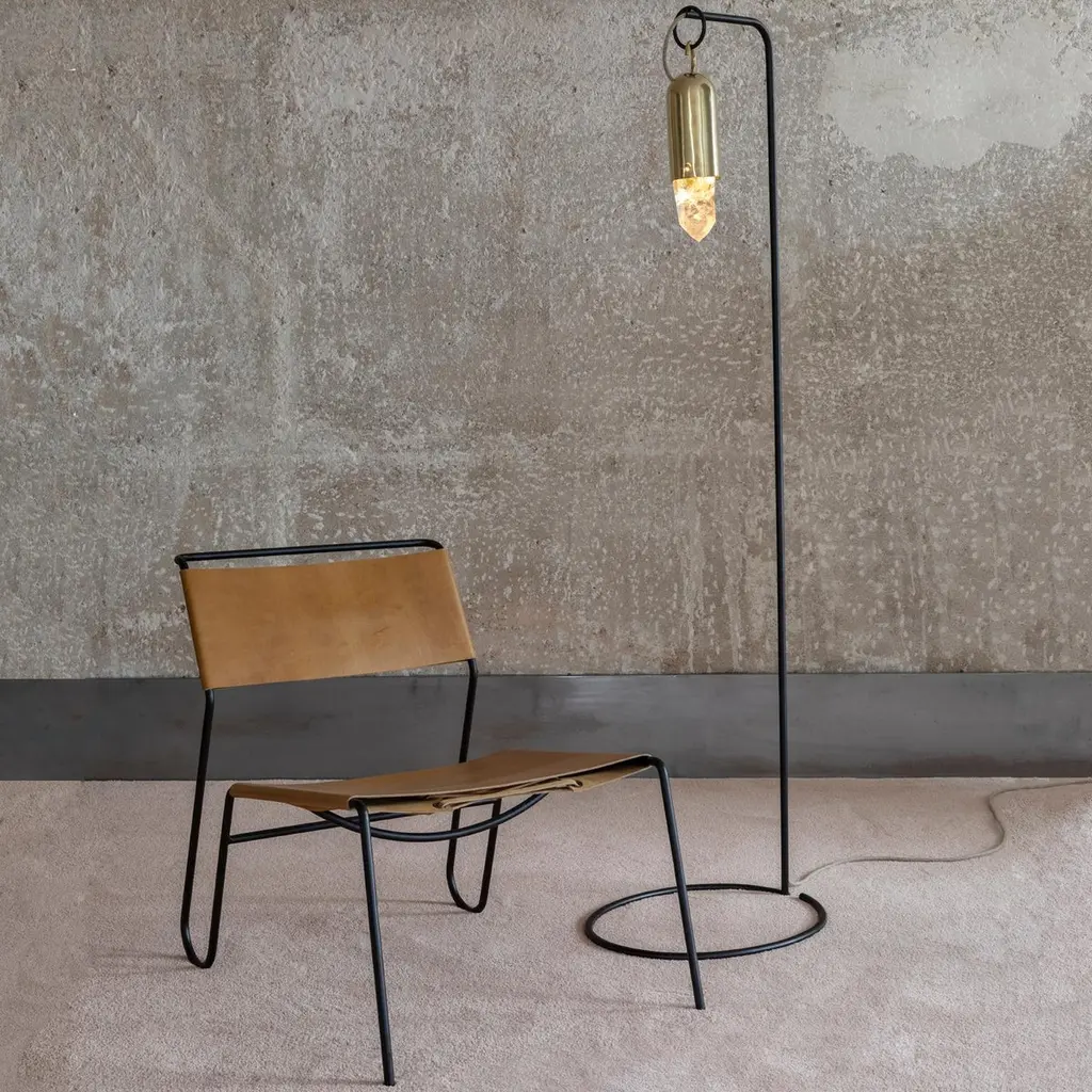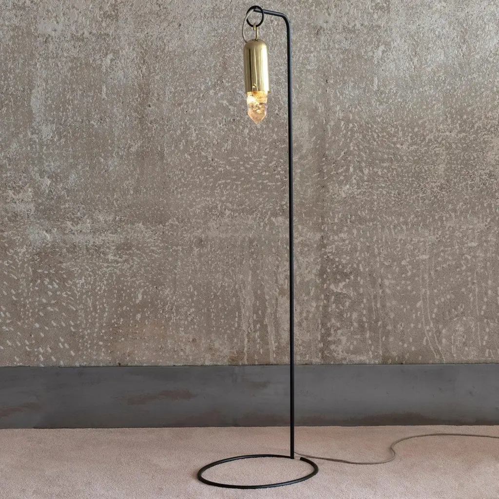Contemporary golden floor lamp, in cast brass and Illuminated Raw Crystal.Produced in São Paulo, Brazil.This golden floor lamp was meticulously handmade by master artisans one delicate piece at a time. It is therefore quite difficult, if not impossible to make identical items. The crystals have natural variations. The brass casting is produced by formation of a mold from a mixture of sand and the liquid alloy of copper and zinc.After purchase, we will contact you for the prior approval of the mineral that will compose your unique piece.The projects are based on a contemporary view of traditional methods from brazillian artists and reinterpreted through the integration of new forms and noble materials.An aesthetic infused with “beauty of imperfection" is obtained by the expressive potential of each material, generating works that recall nature and rationality.