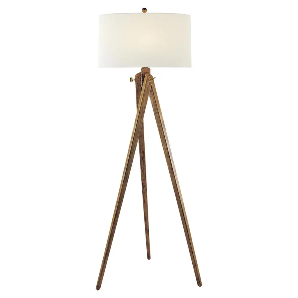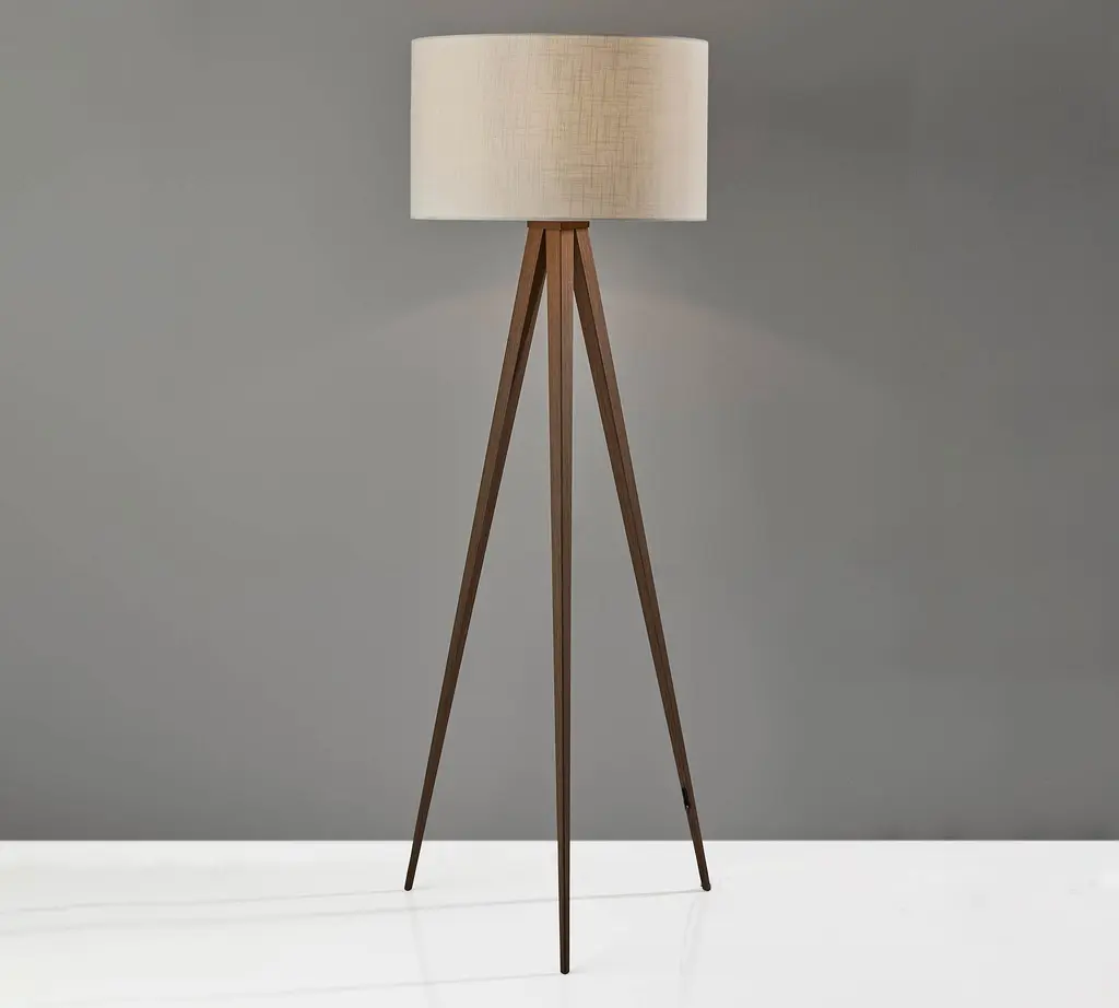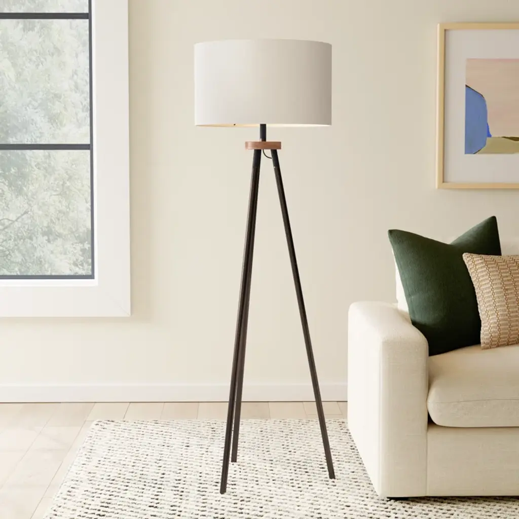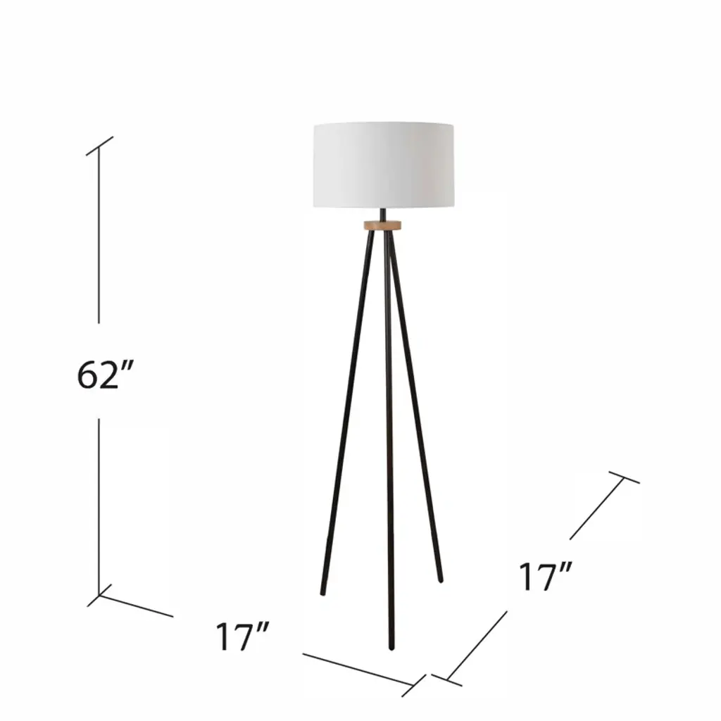 The floor lamp brings the style and clean lines of yesterday into our world today. The tripod-style bronze metal base and a white drum shade for excellent color contrast and light dispersion. Turn on the floor lamp with an easy-access floor switch.