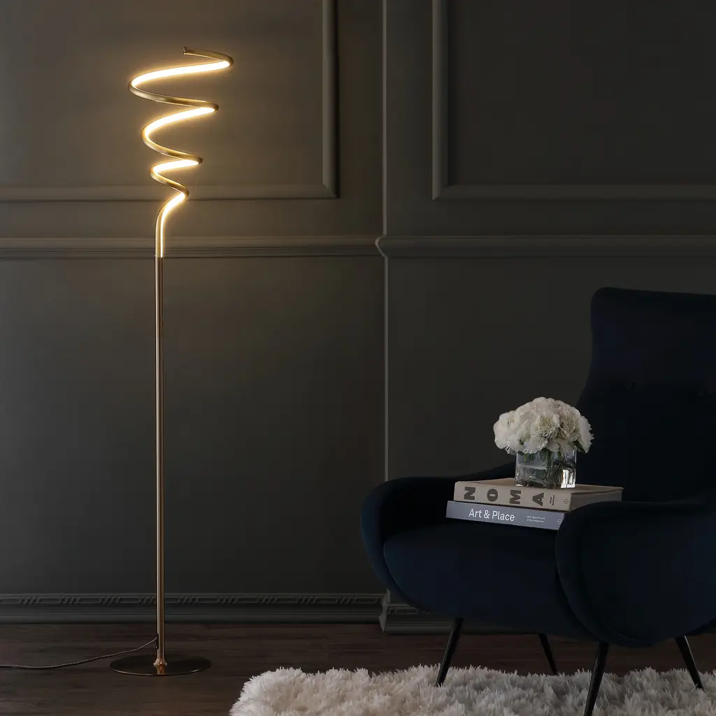 Our scribble-inspired, modern floor lamp features energy-saving, integrated LEDs that last 15 years or more. This slim, 60.5" tall lamp provides bright, clear light. Contemporary style for a living room, dining room, entry, or office.Features:Dimensions:About us:You see a lamp.We see a decorative work of art.A perfectly curved shade casts a dramatic shadow on a floor. A silk cord you never want to hide. Compatible with LED lightbulbs: as easy on the environment as they are on the eyes. The JONATHAN Y Lighting collection considers every detail from impeccably sourced materials to designer styling. And our prices are so attractive, we've transformed a functional necessity into a fashion accessory.JONATHAN Y Lighting - a fashion revolution in home decor.