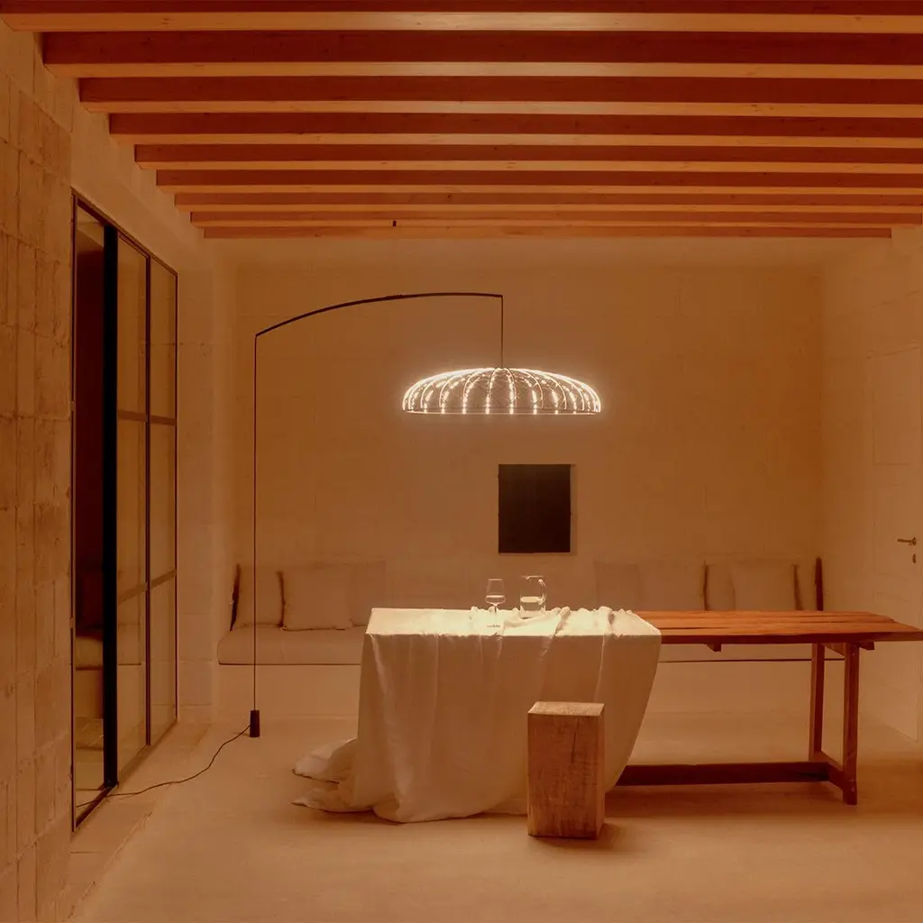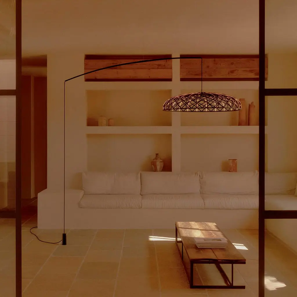 Skynest Motion Floor Lamp in Anthracite by Marcel Wanders, 2022Diffuse lighting hanging appliance. The dome is a combination of luminous and dark elements arranged into a network and formed of core structures covered with a thin interwoven colourful tubular mesh made from recycled and recyclable fabric produced from polyester. Every single luminous element is powered by special micro-connectors located at the top of the dome and is covered with a two-tone mesh, while the side facing the inside of the dome is always white in order to allow for optimal light emission from the LED module. The appliance is fitted with a built-in balancing system at the top of the dome which helps adjust its balance, making it perfectly stable. The bottom of the dome is completed by an aluminium ring that keeps the domes entire network structure in place through a simple snap-fit system. The product is assembled with absolutely no glue so it can be fully separated to be recycled in the future and in case of any repairs or replacements. Plastic structure painted with the same finish as the lamp, fitted with built-in electronics and dimmer.Additional information:Material: Aluminium Cord Colour: AnthraciteItem code : F6394031Voltage: 100-240/48VWeight: 13.23lbCertification: YesEnvironments: Indoor dry locationPower: 57WCord Length: 236 inchesSwitching: Yes IntegratedLight source type: LEDDimmable: Dimmer IntegratedAvailable in other lamp finishes: Blue Tourmaline, Almond and Brick Red.