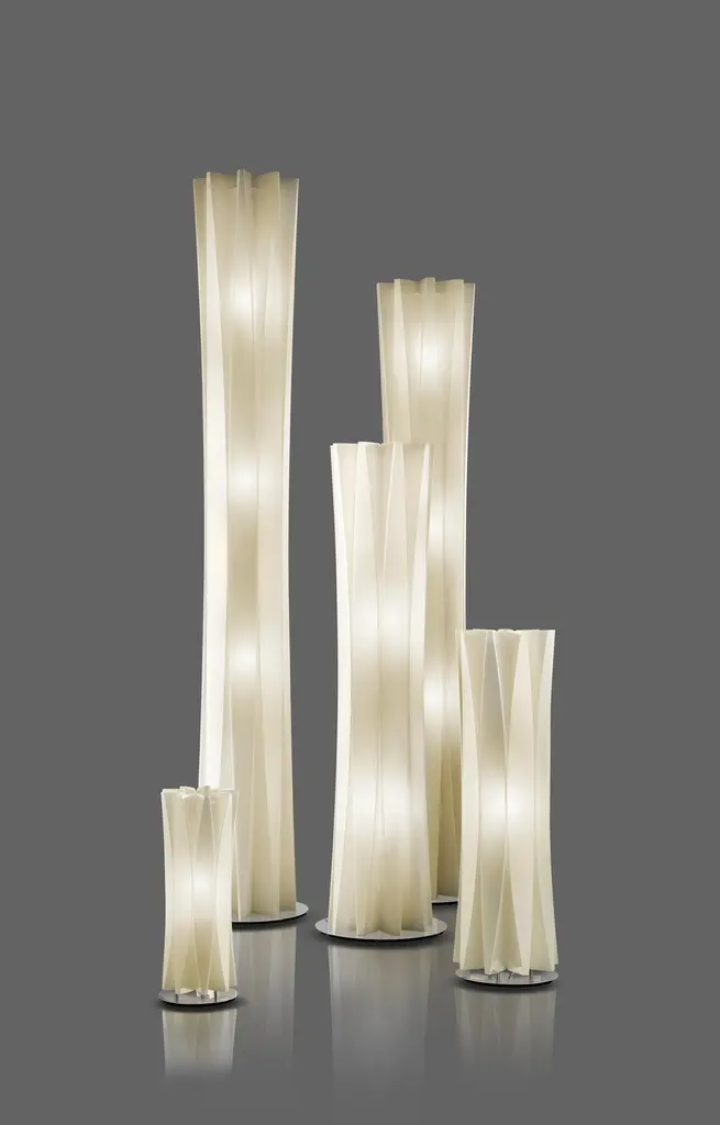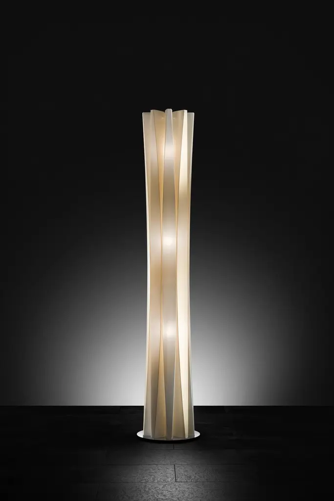 Slim and refined, Bach is statuary, with elegant yet rigorous curves, bringing fluid, linear movement and illumination to any interior. Bach is available in various heights and sizes, that when grouped together, create welcoming nooks filled with warm chromatics. E27 dimmable lighting. Made with Opalflex. Also available in other variations on 1stdibs including size, color, and material. Please inquire for more information on those variations.Size: 31,5 x 31,5 x h. 161 cmColors: WhiteMaterials: Opalflex®Lighting: 3 X 12W E27 LED Filamente BulbsWeight: kg 3Dimmerabile: Dimmer included, dimmable bulbs needed