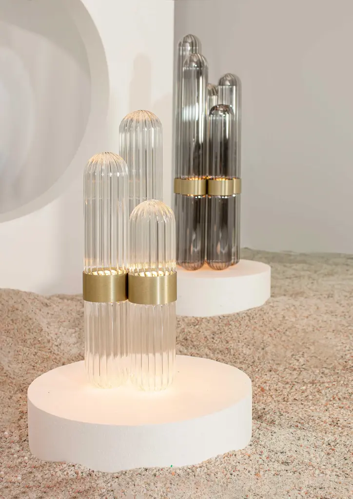 Small Cactus Floor Lamp In Transparent With Brass Centrepiece By Mickael Koska For Pulpo