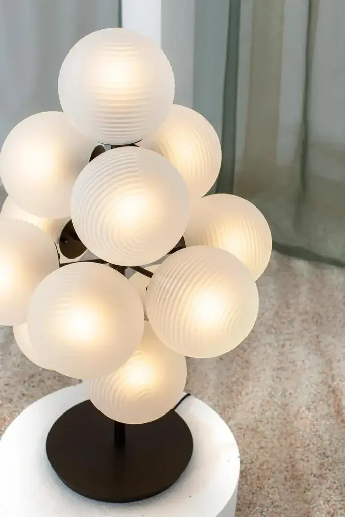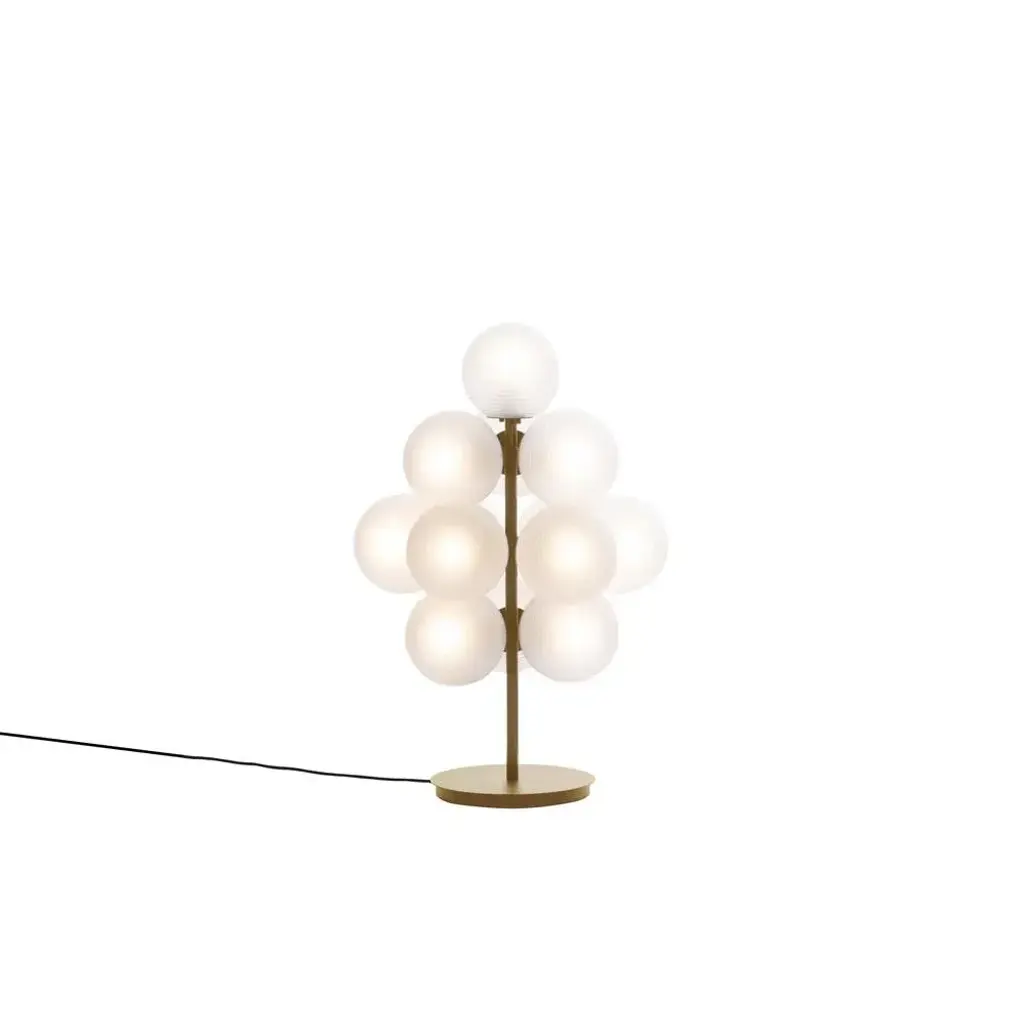 Stellar grape small transparent acetato champagner floor light by pulpo dimensions: d61 x h68 cm materials: handblown glass coloured ,powder coated steel. May be available separately in different finishes.raised up above the clouds on a simple black powder coated steel base, the stellar floor lamp will shine across your interior universe. A grouping of star-like spheres mixes frosted acetate illumination with a textured ripple. These handblown glass spheres offer the perfect mix of elegance and mystery for the rest of your interior to orbit. pulpo is a design editor for high-end products in the home sector. Design is our passion. Art is our engine. We are fascinated by the craft of the ceramic and glassblowing workshops and are guided by the rough aesthetics of these unique pieces. Pulpo’s philosophy goes back to the idea of ??the “carte blanche”. Our designers and artists develop their designs freely and experimentally. A variety of materials and a weakness for structures are our strengths. The headquarters of pulpo is in weil am rhein, near the swiss border. Consisting of the creative and sales department, warehouse and logistics, this is the think tank for our artists and designers. Pulpo’s dealer network extends far beyond weil am rhein – from iceland and dubai to australia. Pulpo is movement – is possibility – is passion. In 2006, pulpo was founded by ursula and patrick l’hoste as a design brand at the interface between shape and material. Pulpo’s conception is to edit lighting, furniture and accessoires on editor’s choice. The company’s focus is to conduct up-and-coming designers and selected manufacturers, using the nature of material’s to form the score. Materials such as ceramics, stone and especially glass, which is pulpo’s primary focus since 2013. up to 250v (europe/uk standard).
