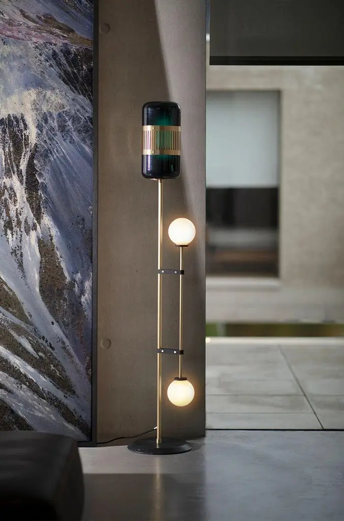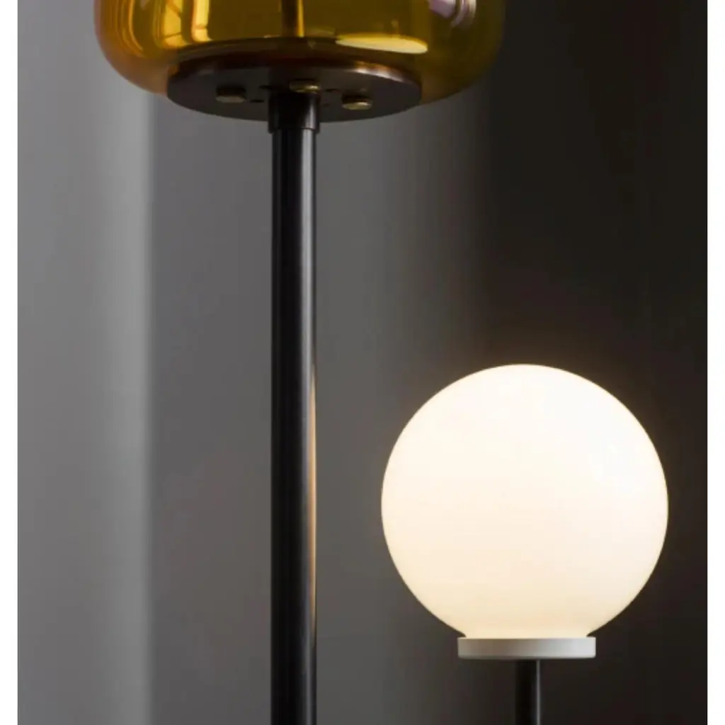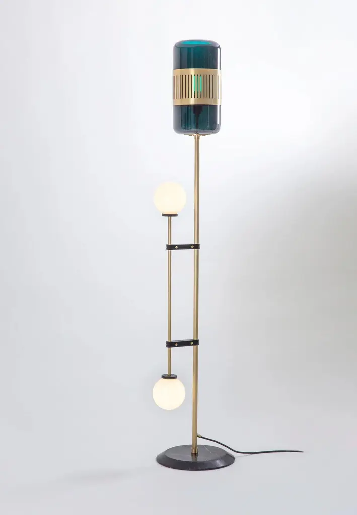 Amber glass lizak floor lamp by Bert FrankDimensions: 30 x 30 x 159 cmMaterials: brass and glassAvailable finishes: brass, opal and blueAll our lamps can be wired according to each country. If sold to the USA it will be wired for the USA for instance.When Adam Yeats and Robbie Llewellyn founded Bert Frank in 2013 it was a meeting of minds and the start of a collaborative creative partnership with engineering at the core.Both men share a love of design and deep respect for the heritage of British engineering. Both wanted to create high-end products that would stand the test of time and fly in the face of throwaway consumerism. The partnership has resulted in award-winning lighting and accessories that fuse the integrity of the small-scale workshop with timeless aesthetics reimagined for today.The two men work closely together from concept to end product. Robbie’s imagination and occasional flights of fancy are informed by Adam’s understanding of engineering principles and fabrication techniques. Equally, Adam's designs are often the starting point for a collection. In that sense Bert Frank is a true creative collaboration. As a result, every designed is honed to perfection, every detail carefully considered.