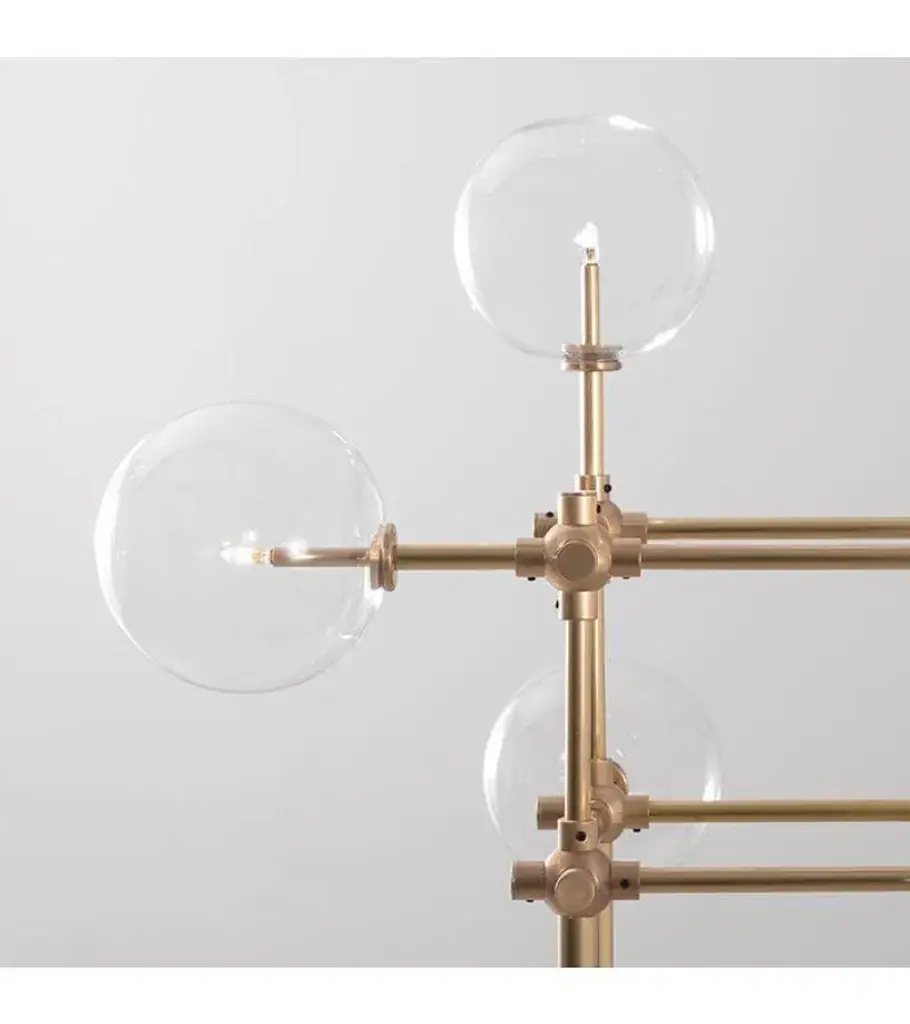 Black gunmetal 4 arm sculptural floor lamp by schwung dimensions: d 74.3 x w 74.3 x h 167.8 cm materials: solid brass, hand-blown glass globes finish: black gunmetal. Also available in finishes: natural brass or polished nickel. All our lamps can be wired according to each country. If sold to the usa it will be wired for the usa for instance. Made entirely of solid brass and handblown glass globes. Could be dimmable. Schwung is a german word, and loosely defined, means energy or momentumm of a positive manner. Synonyms: verve, zest, panache, momentum. up to 250v (europe/uk standard).