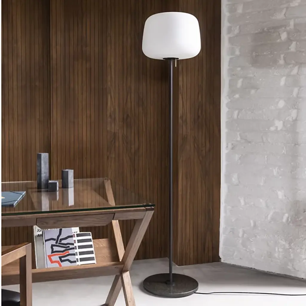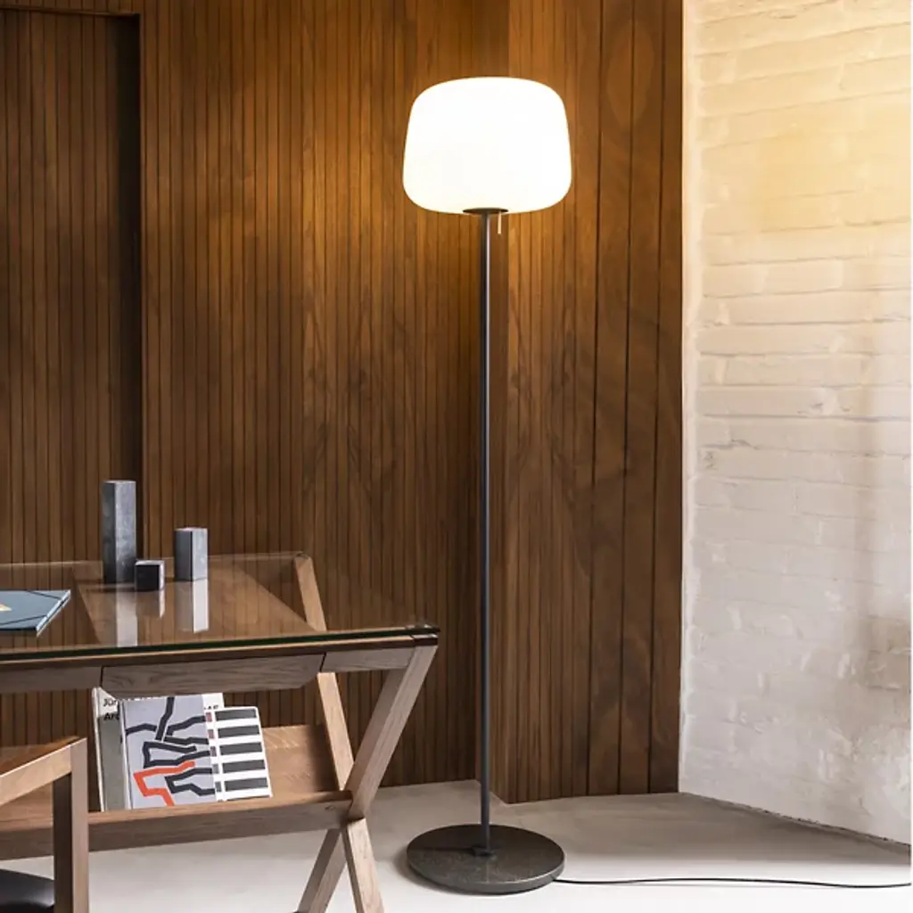 Designed by Terence Woodgate, the Soft Floor Lamp from Case Furniture features floor and table lamps centered around a beautifully rounded conic glass shade. Crafted from blown opal glass and acid-etched for a diffused glow, the shade emits a gentle, ambient light that defines the collection. With a three-stage touch dimmer, these lights offer versatile functionality, making them ideal for residential, office, or commercial settings. This lamp combines elegant form with practical design for a warm, adaptable lighting experience.