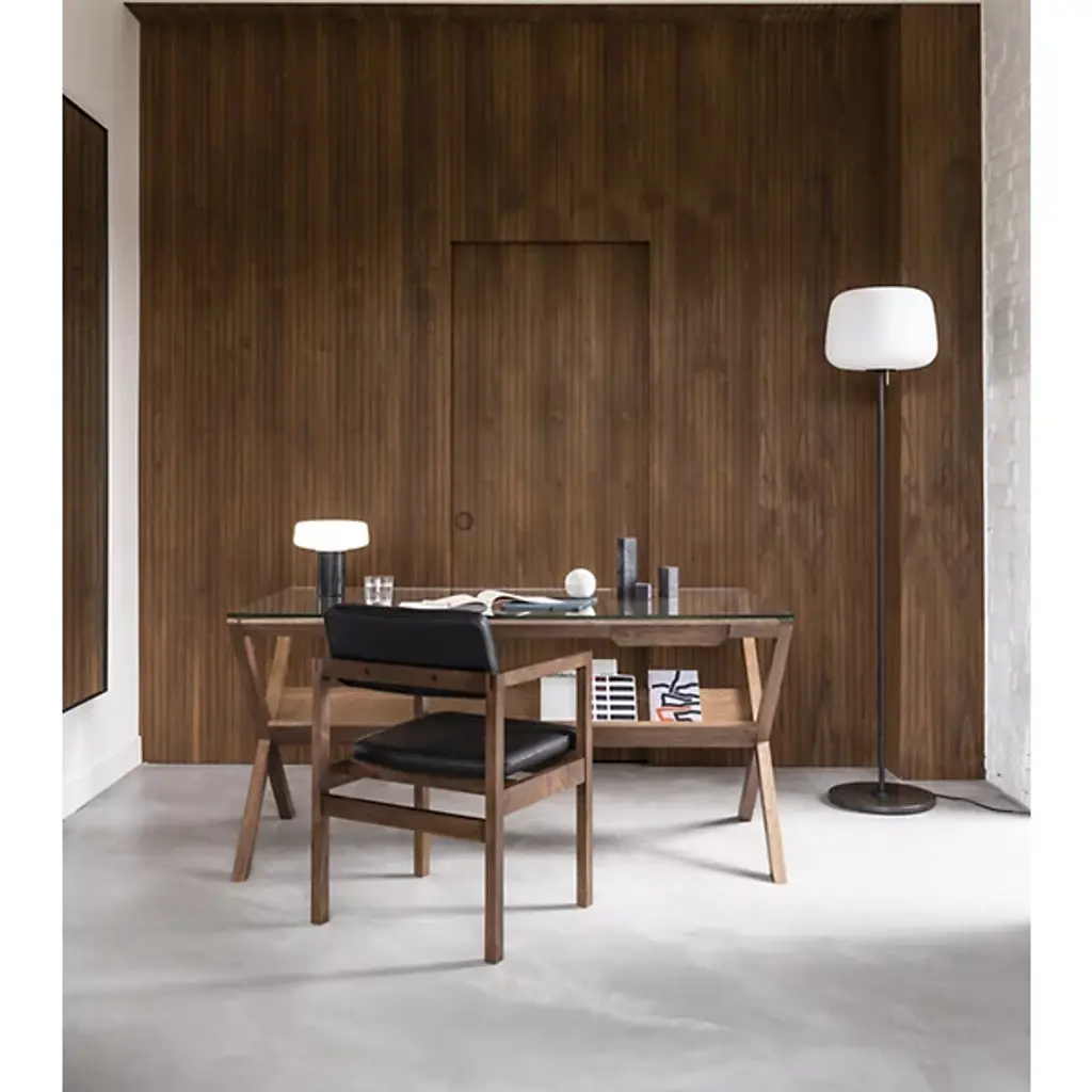 Designed by Terence Woodgate, the Soft Floor Lamp from Case Furniture features floor and table lamps centered around a beautifully rounded conic glass shade. Crafted from blown opal glass and acid-etched for a diffused glow, the shade emits a gentle, ambient light that defines the collection. With a three-stage touch dimmer, these lights offer versatile functionality, making them ideal for residential, office, or commercial settings. This lamp combines elegant form with practical design for a warm, adaptable lighting experience.