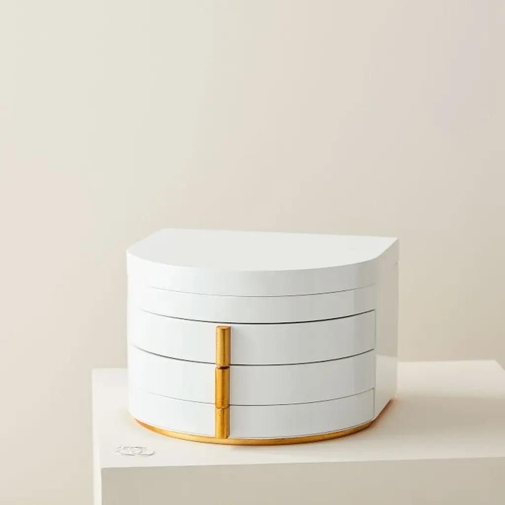 Soft Geo Modern White Lacquer Jewelry Box - Grand