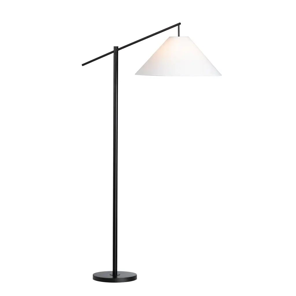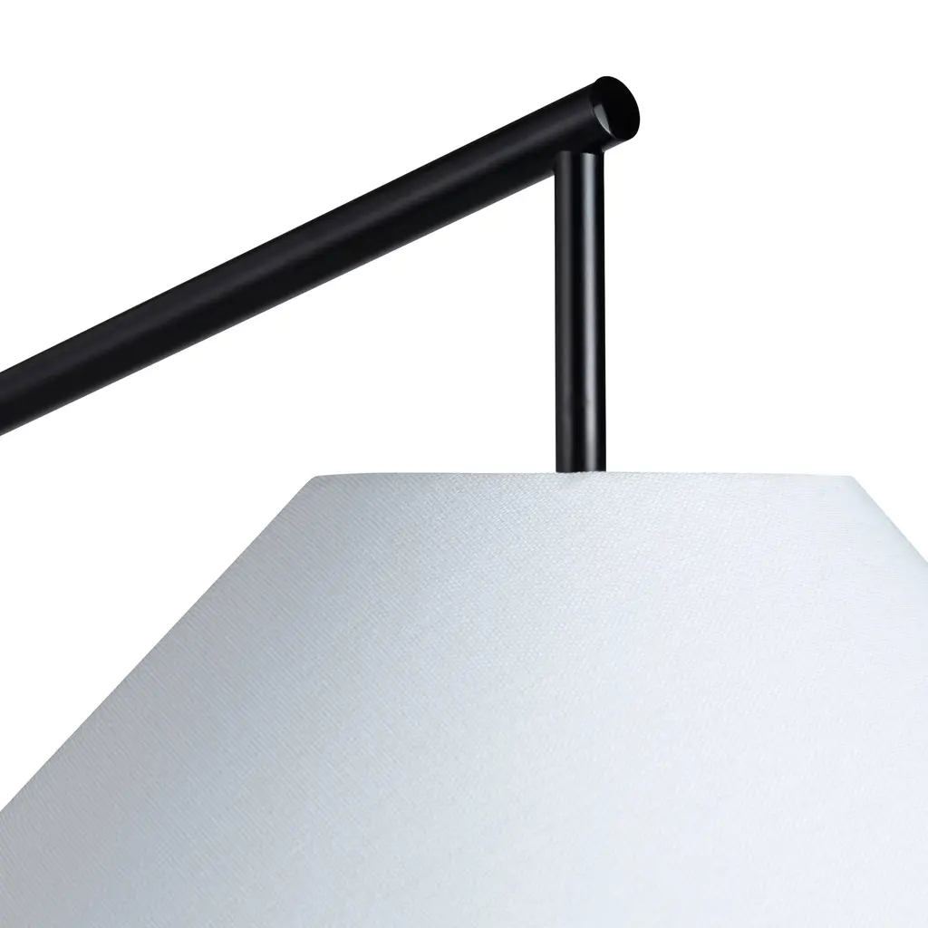 Solace Steel Swing Arm Floor Lamp With White Linen Shade - Black