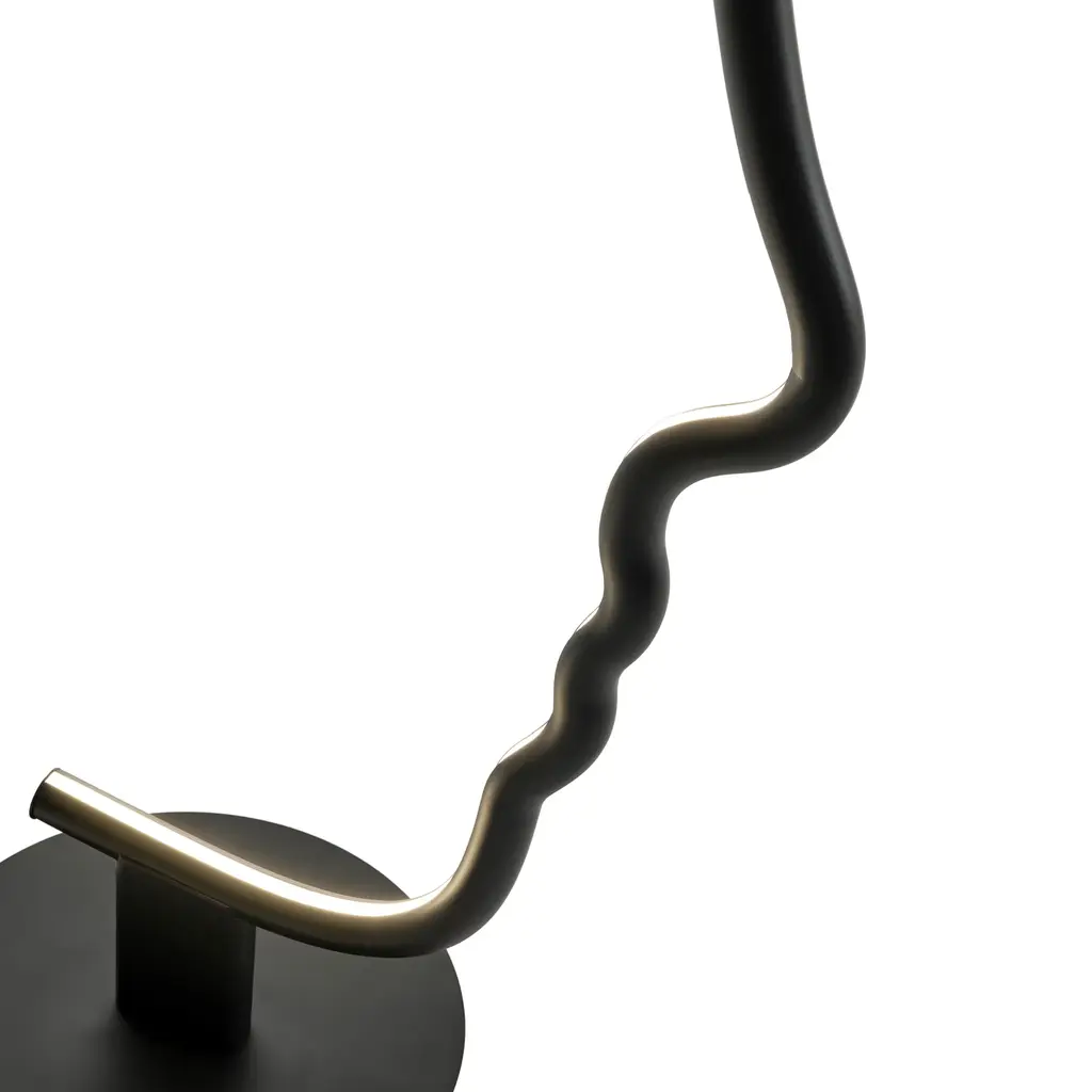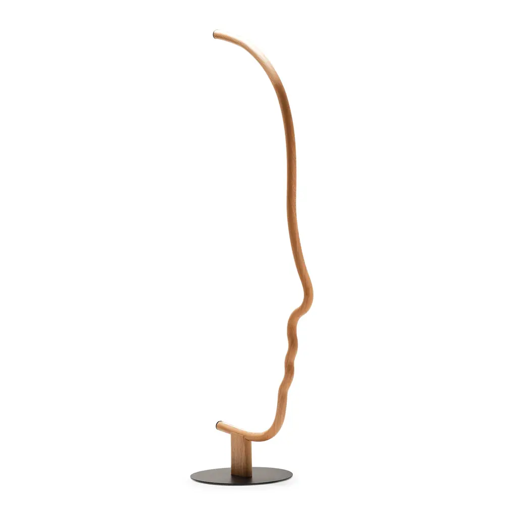 Indulge in the sophistication and exclusivity of the Solid Wood Graphic Floor Lamp from Mogg Vis a Vis. Crafted with precision from solid wood and finished with black paint, this lamp resembles a sculpture that adds an artistic touch to your home. With its LED light and metal base, it balances form and function seamlessly. Elevate your space with this micro-installation.