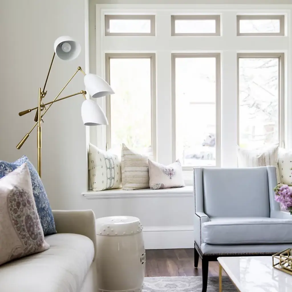 Modern aesthetics joined with unbeatable utility. The Sommerard Triple Arm Floor Lamp by Visual Comfort Signature, formerly known as Visual Comfort, starts with a sleek tripod base and slender stem which reaches upward in a fluid motion to join three adjustable arms. Each arm has its own lighting source combined with an artisan cut shade for an elegant appeal that is sure to accentuate your home. Move the arms in whatever configuration is needed for task lighting, while reducing glare.