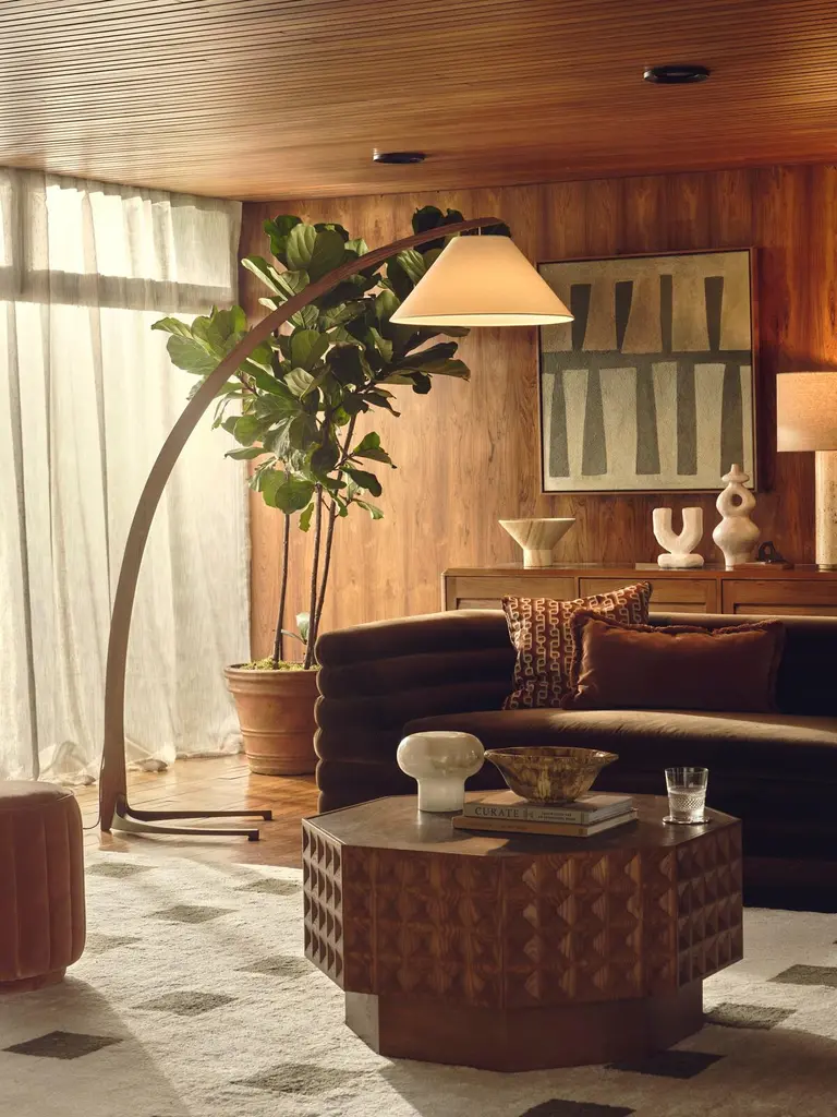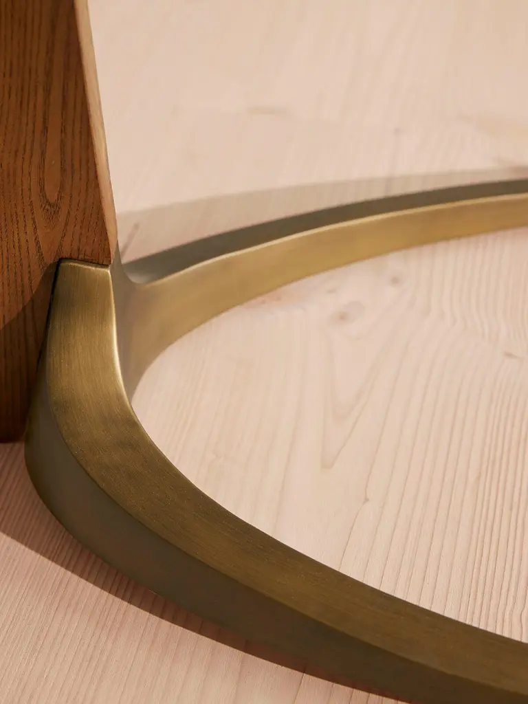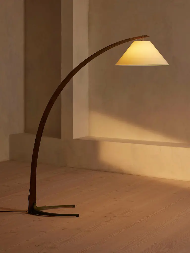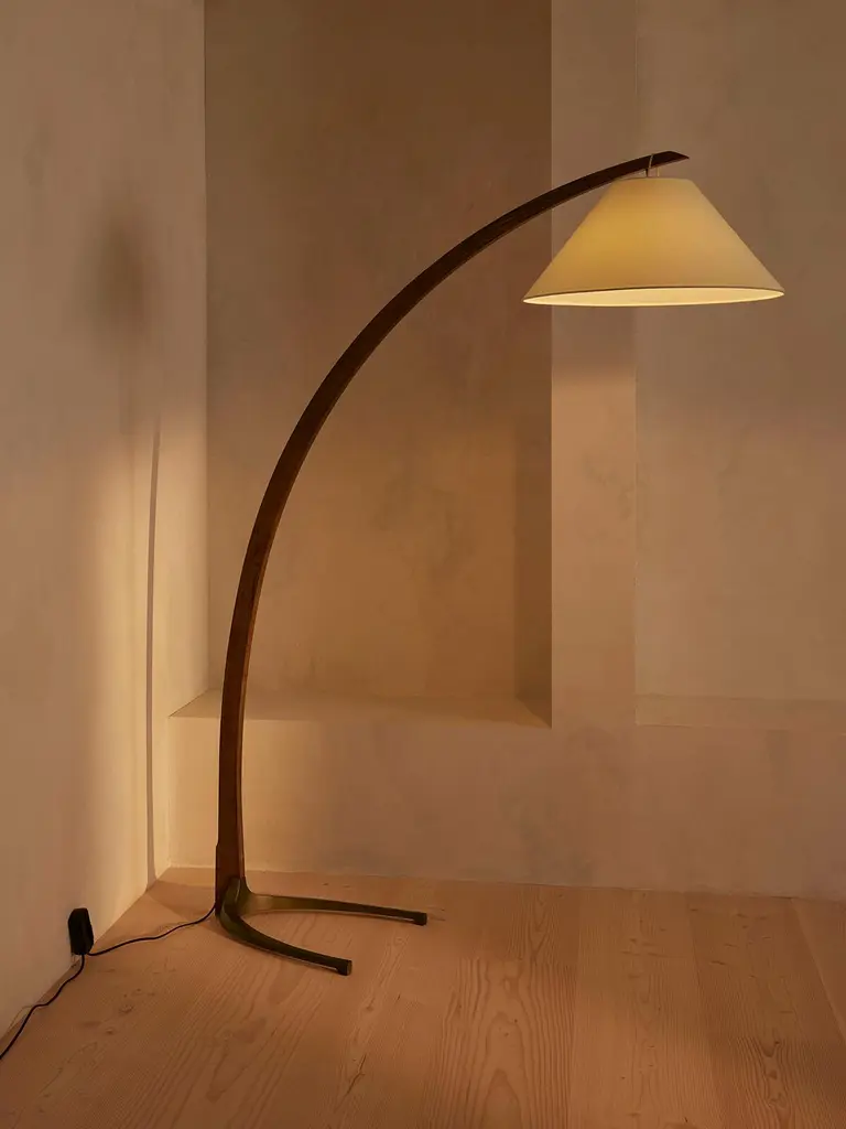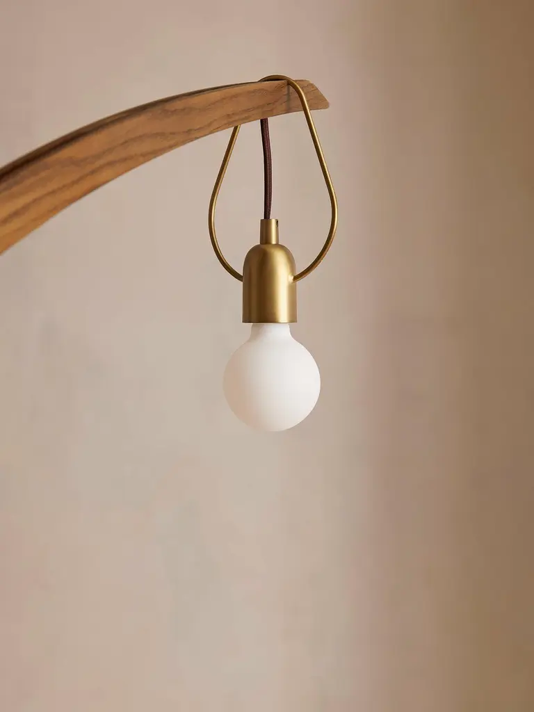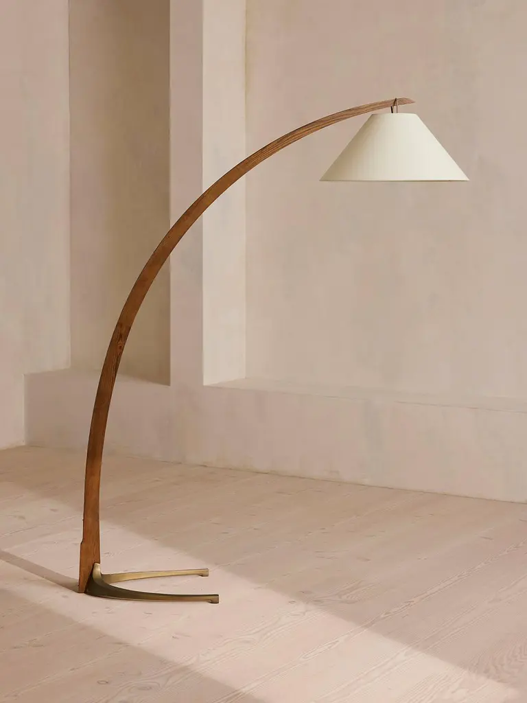 Referencing the lighting styles seen in Soho House Hong Kong, the Spencer floor lamp features a sleek arc shape for a stand-alone statement. A solid oak frame sits on antique brass feet, while a simple fabric shade enhances the lamp's sculptural lines. All of our portable lamps are fitted with dimmer switches, allowing you to adjust the light level to your mood.