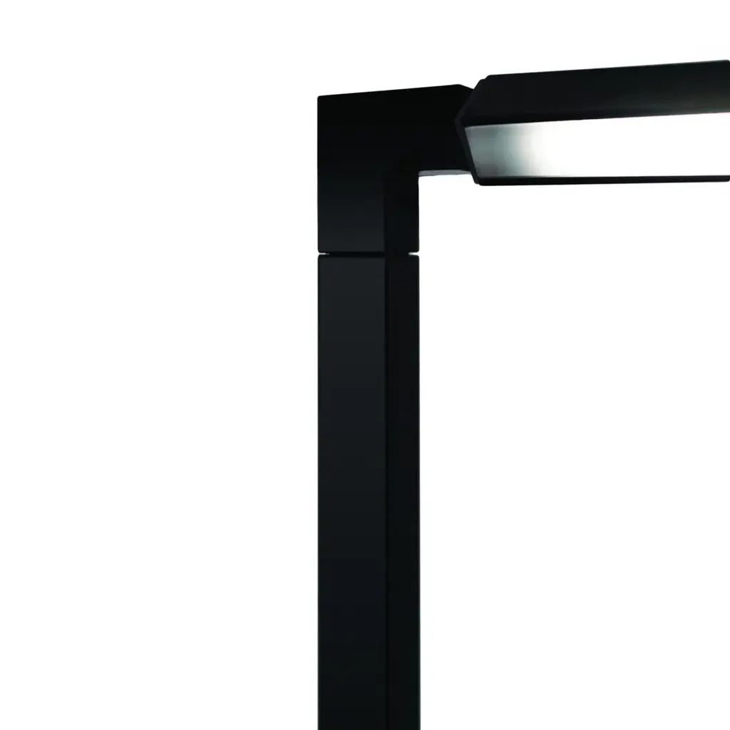 Floor, wall/ceiling, pendant and table lamps based on an extruded and tubular aluminum structure connected with molded ABS joints. In white or black painted finish and polycarbonate opaline diffuser. The joints enable the profiles to house LED sources which can be rotated 360° to produce direct or indirect lighting. The floor version is designed to provide a virtual divider of ambience, while the wall/ceiling versions provide a versatile and comfortable ambience. LED sources are dimmable with a warm tone. Features