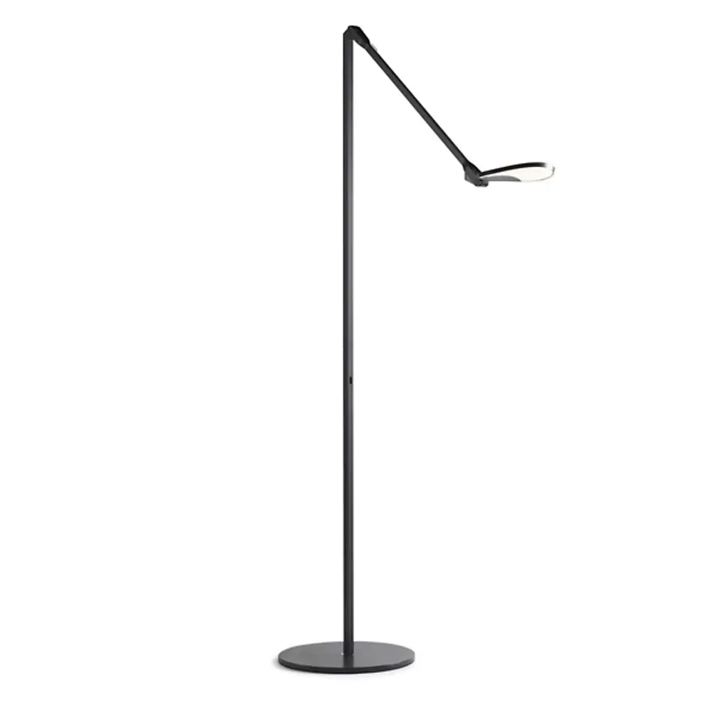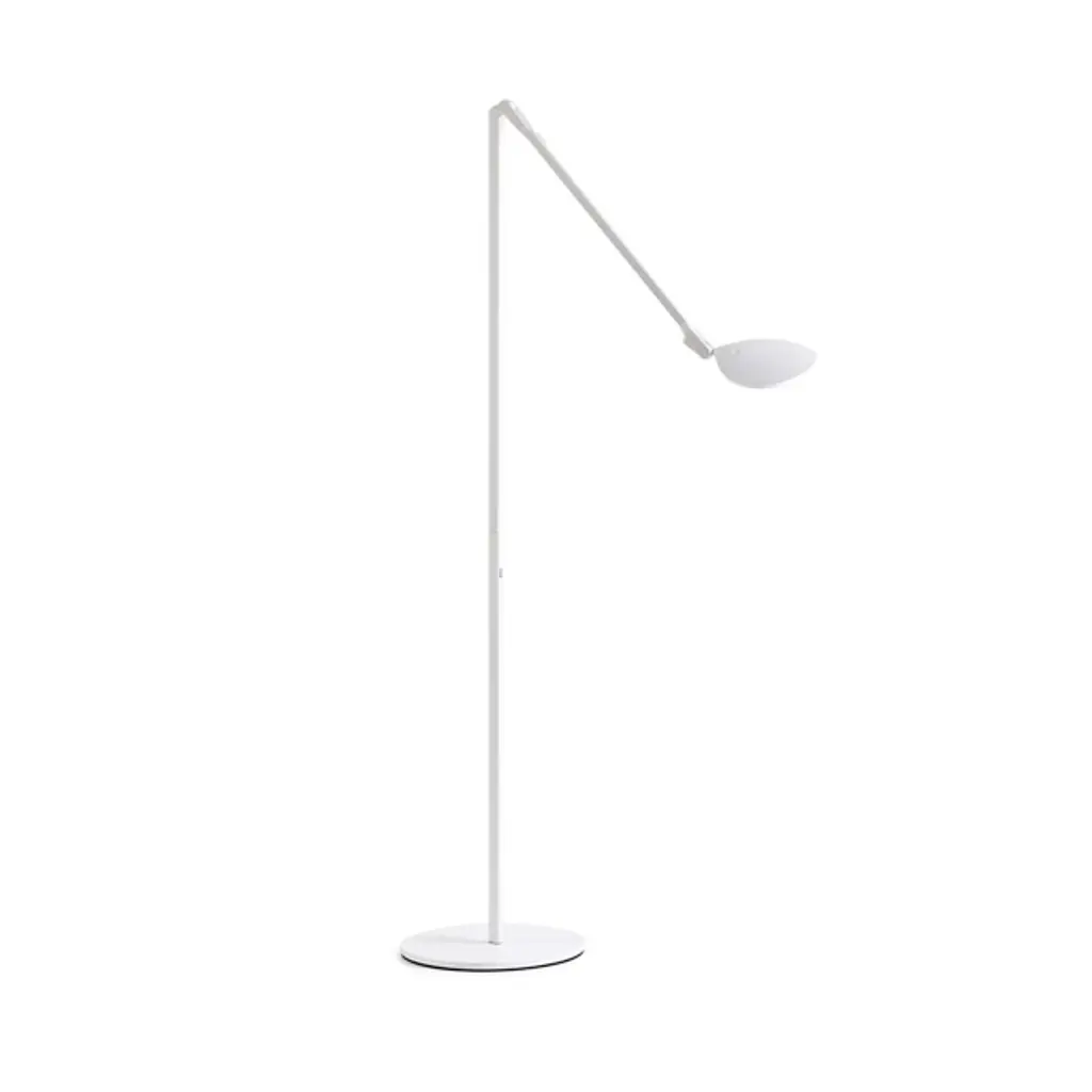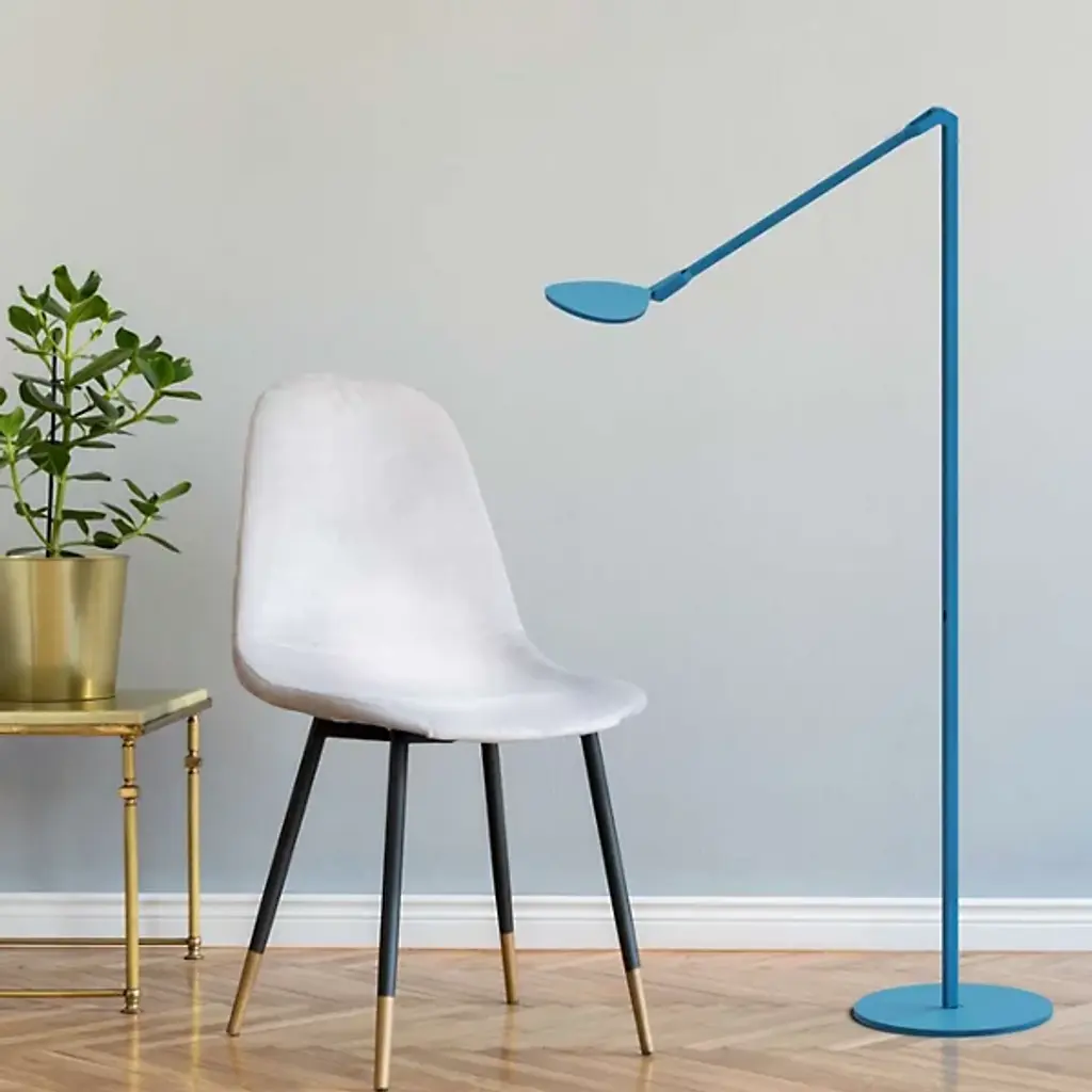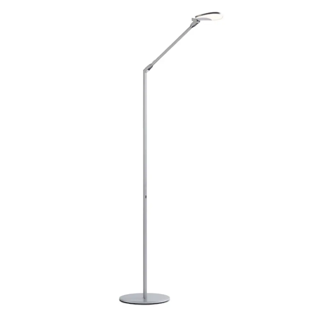 Flexibility and form. The Splitty LED Floor Lamp from Koncept is a highly adaptable fixture with a lively, modern style. From Designers Kenneth Ng and Edmund Ng, this aluminum floor lamp stands on a circular base that supports its tall and slender body. Its unique joint design allows its light to be directed in virtually any direction, while its slender head contains a discreet integrated LED. A simple button lets you control its brightness, and a motion sensor ensures optimum energy-efficiency when you leave the room.