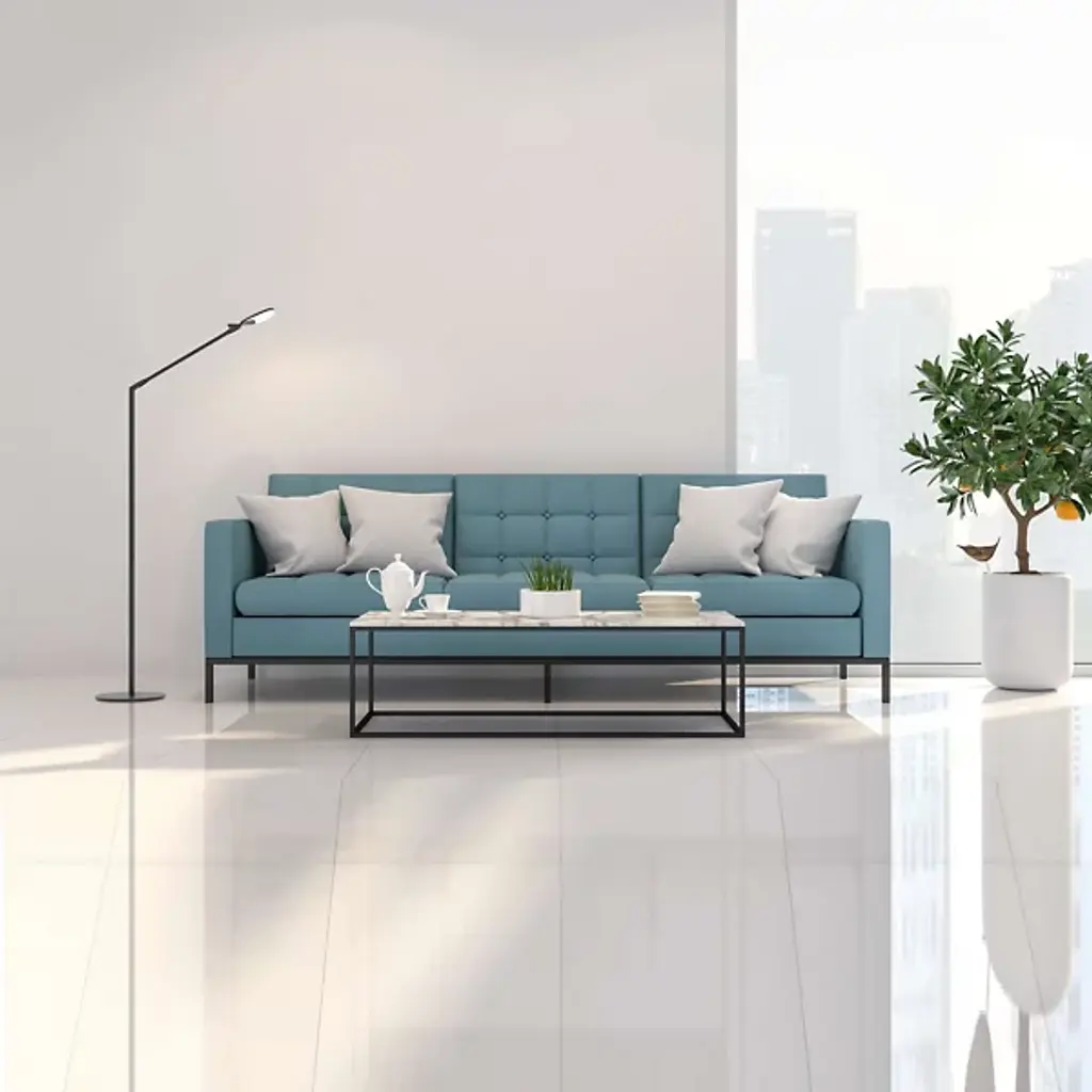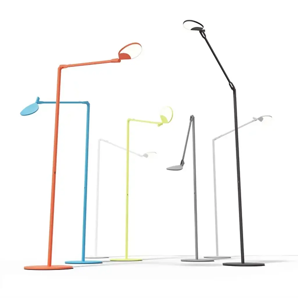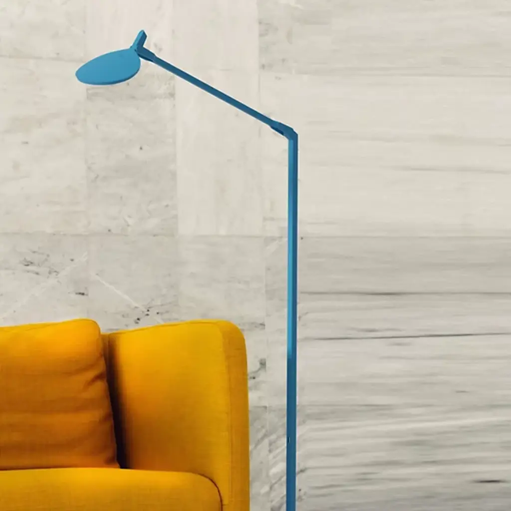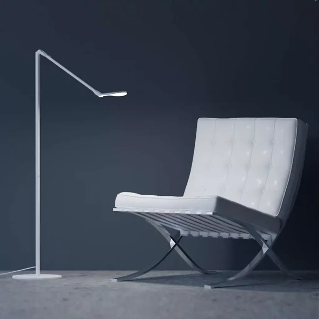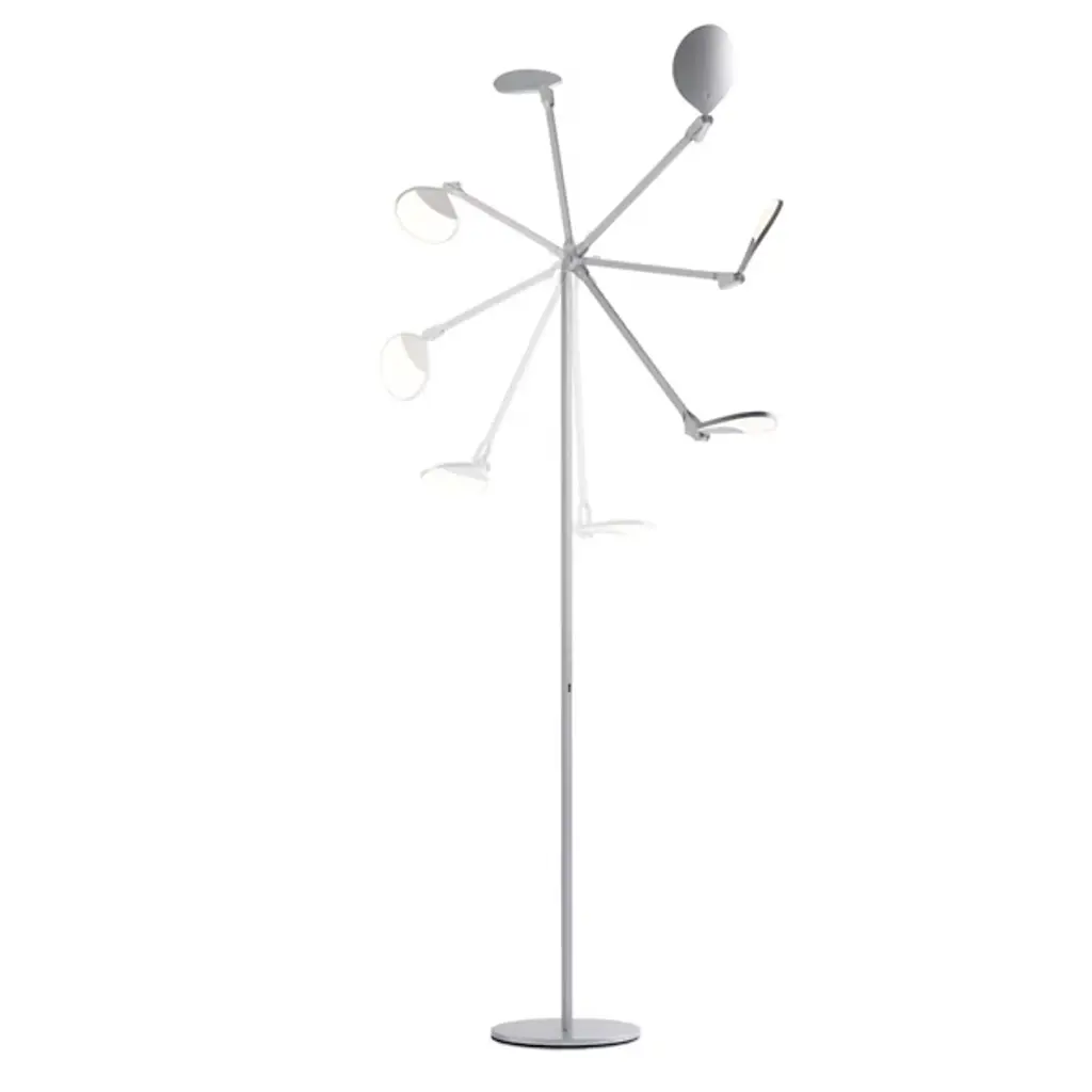Flexibility and form. The Splitty LED Floor Lamp from Koncept is a highly adaptable fixture with a lively, modern style. From Designers Kenneth Ng and Edmund Ng, this aluminum floor lamp stands on a circular base that supports its tall and slender body. Its unique joint design allows its light to be directed in virtually any direction, while its slender head contains a discreet integrated LED. A simple button lets you control its brightness, and a motion sensor ensures optimum energy-efficiency when you leave the room.